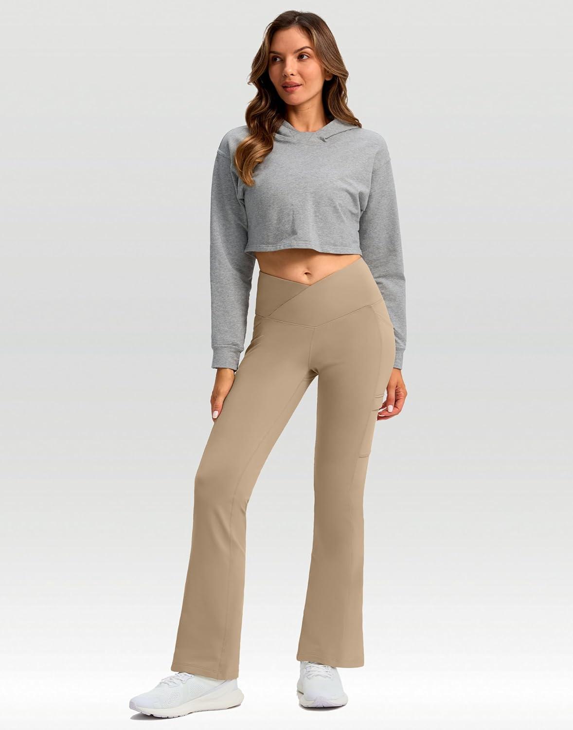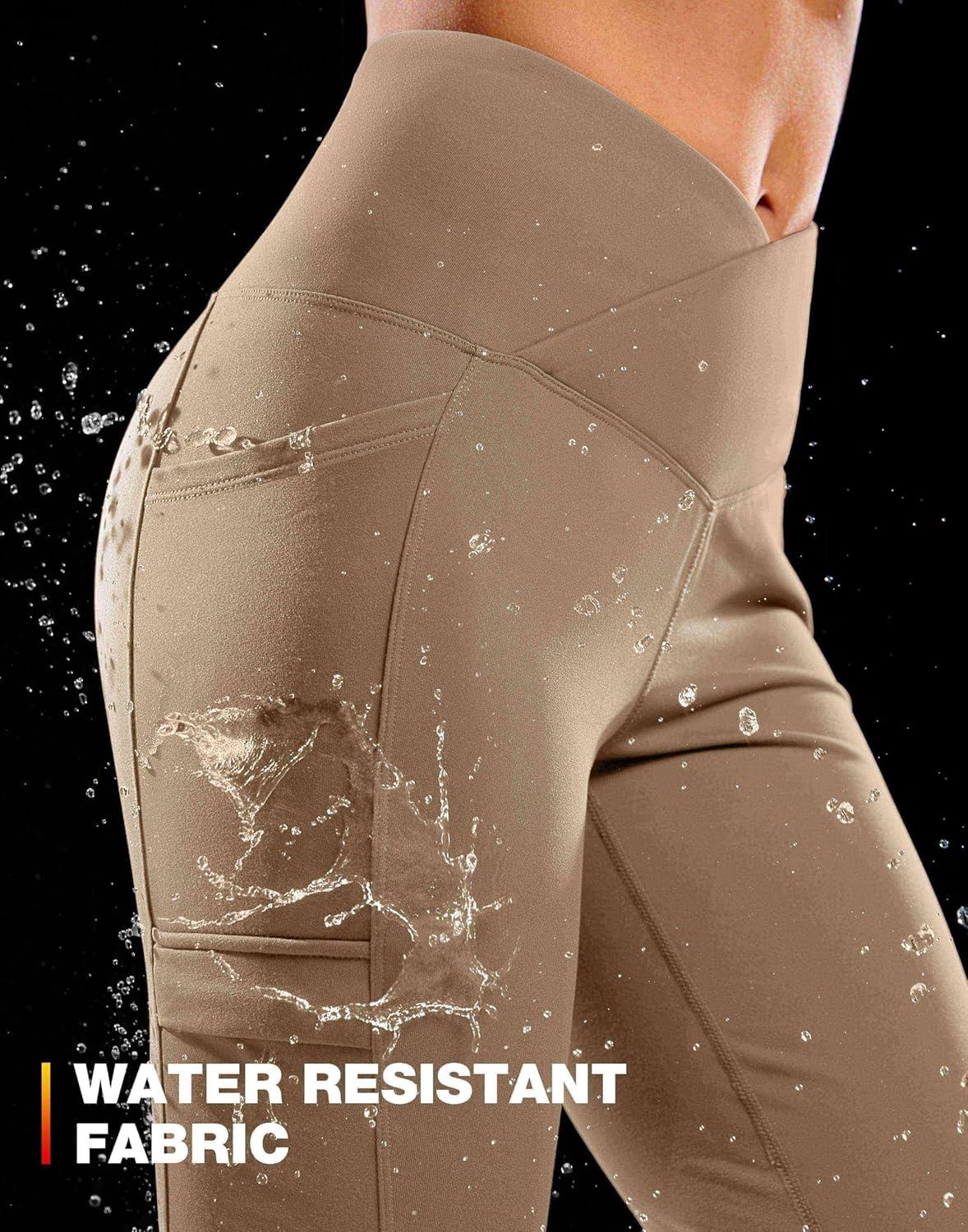 G Gradual Women's Fleece Lined Pants Water Resistant Winter Thermal Flare Leggings Hiking Snow Pants for Women 4 Pockets(Khaki)