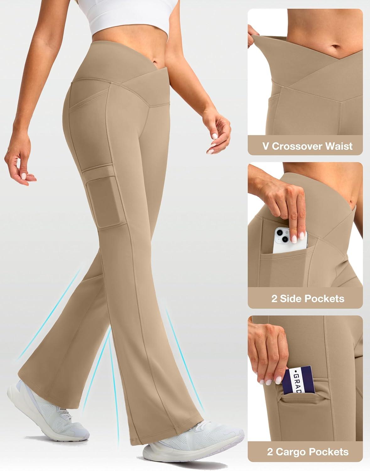 G Gradual Women’s Fleece Lined Pants Water Resistant Winter Thermal Flare Leggings Hiking Snow Pants for Women 4 Pockets(Khaki)