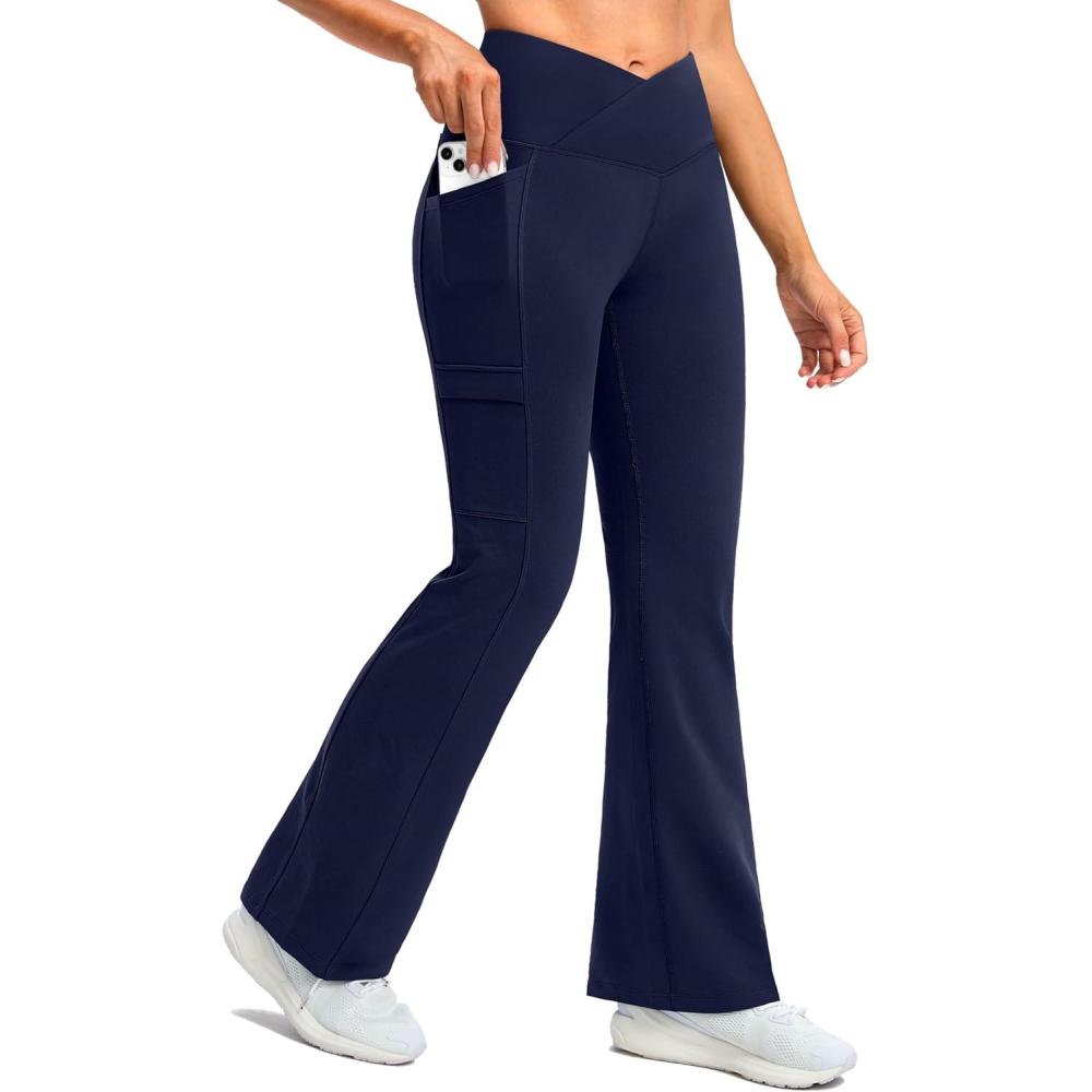 G Gradual Women’s Fleece Lined Pants Water Resistant Winter Thermal Flare Leggings Hiking Snow Pants for Women 4 Pockets(Navy)