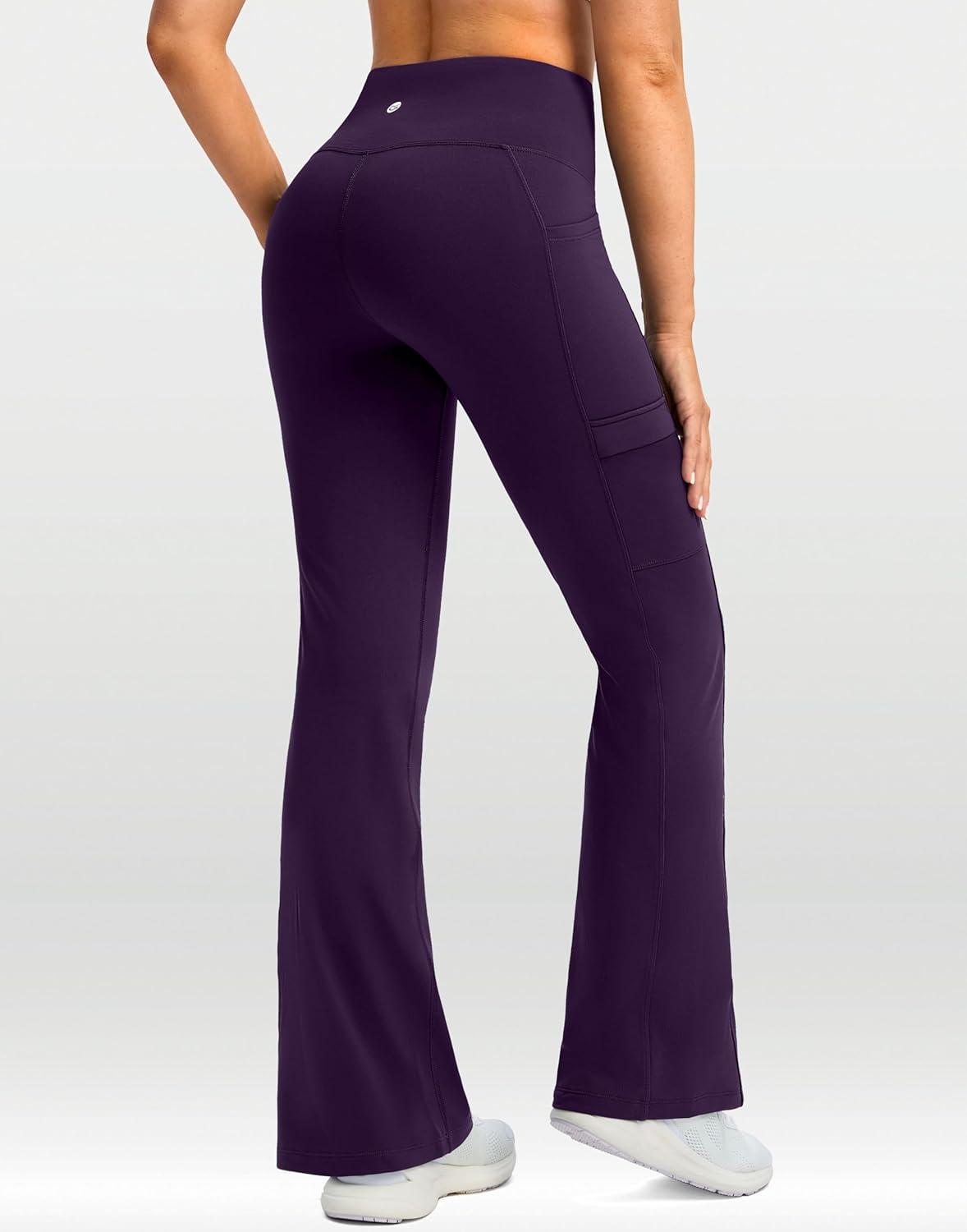G Gradual Women’s Fleece Lined Pants Water Resistant Winter Thermal Flare Leggings Hiking Snow Pants for Women 4 Pockets(Purple)