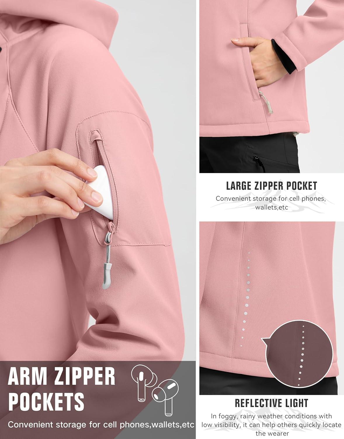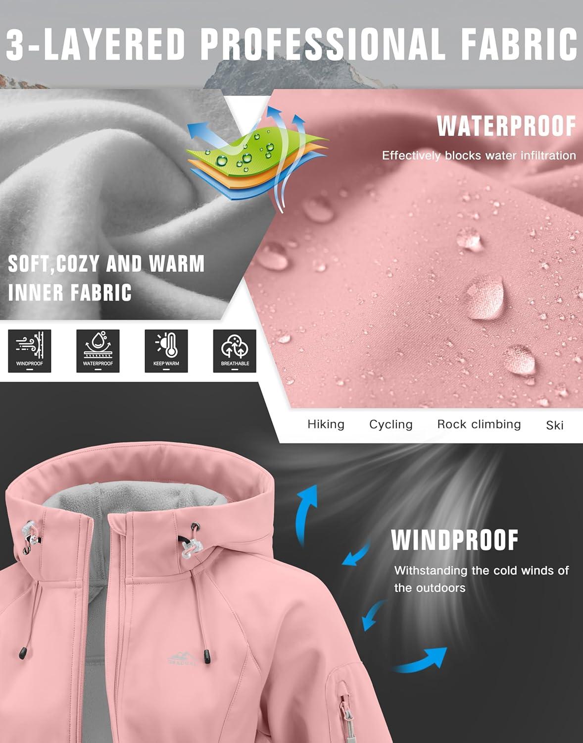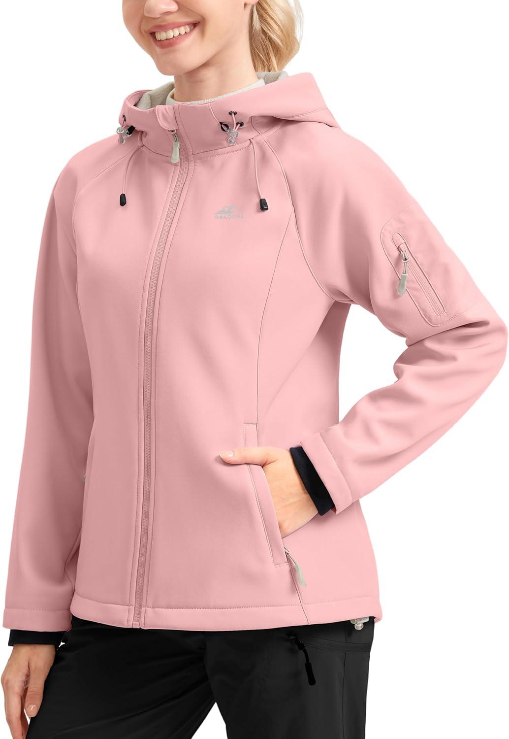 G Gradual Women's Fleece Lined Softshell Jacket Windproof Warm Light Waterproof Hooded Jacket for Women Winter/Fall/Spring(Pink)