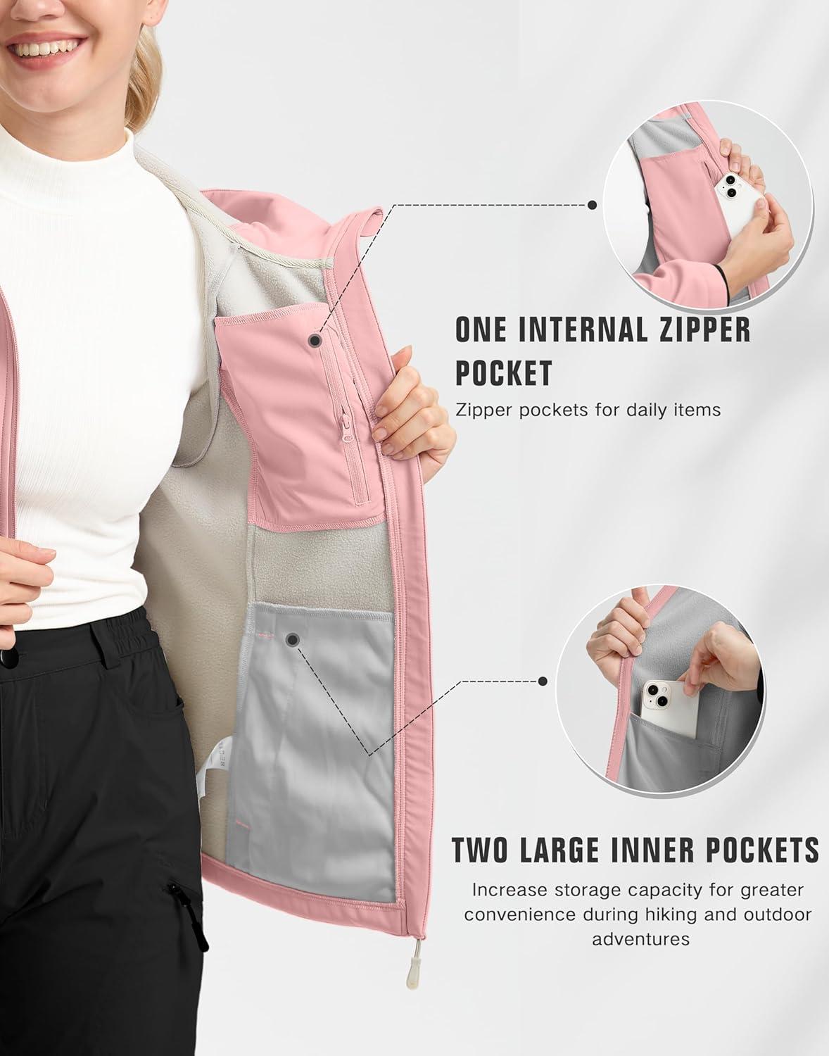 G Gradual Women’s Fleece Lined Softshell Jacket Windproof Warm Light Waterproof Hooded Jacket for Women Winter/Fall/Spring(Pale)