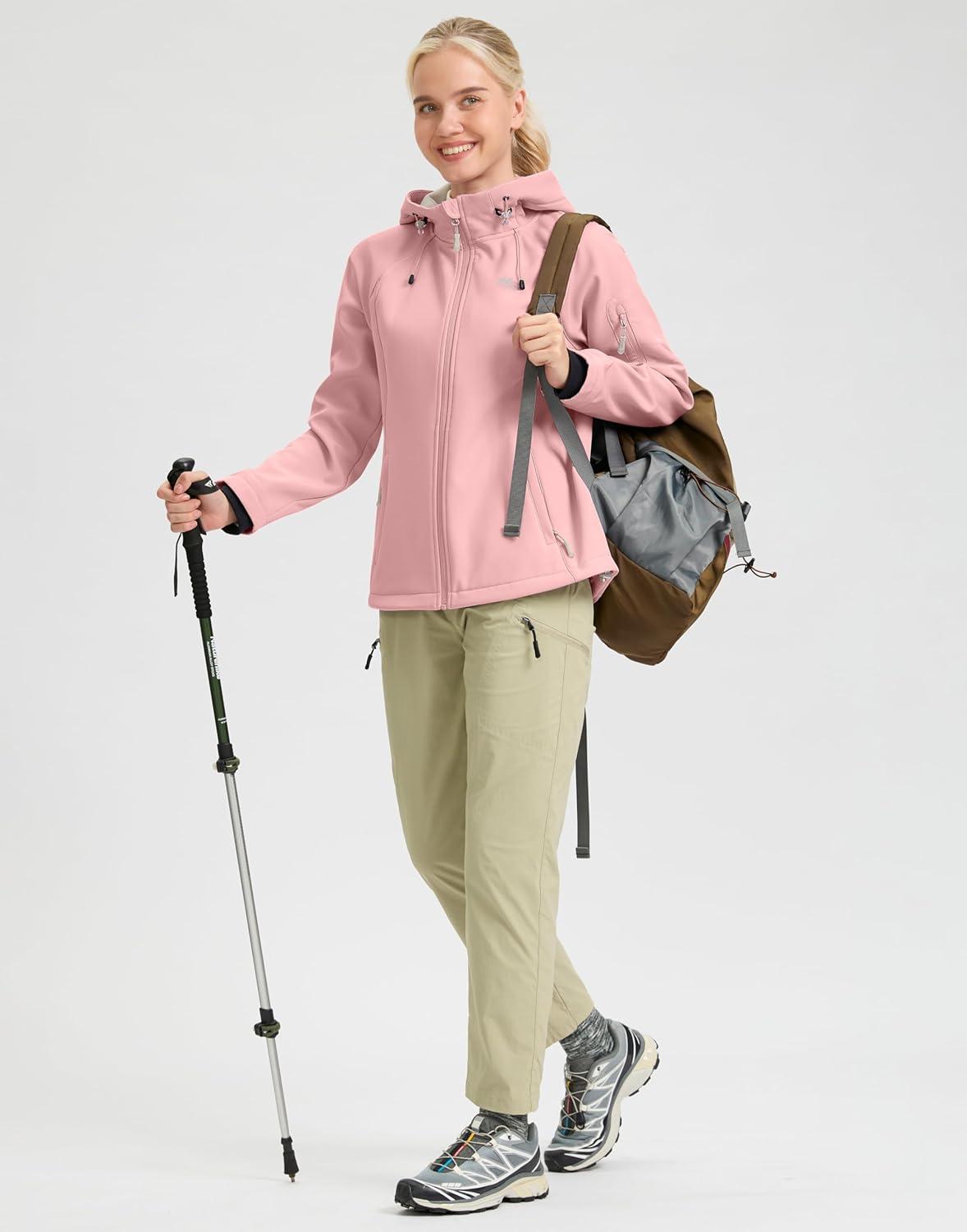 imageG Gradual Womens Fleece Lined Softshell Jacket Windproof Warm Light Waterproof Hooded Jacket for Women WinterFallSpringPink