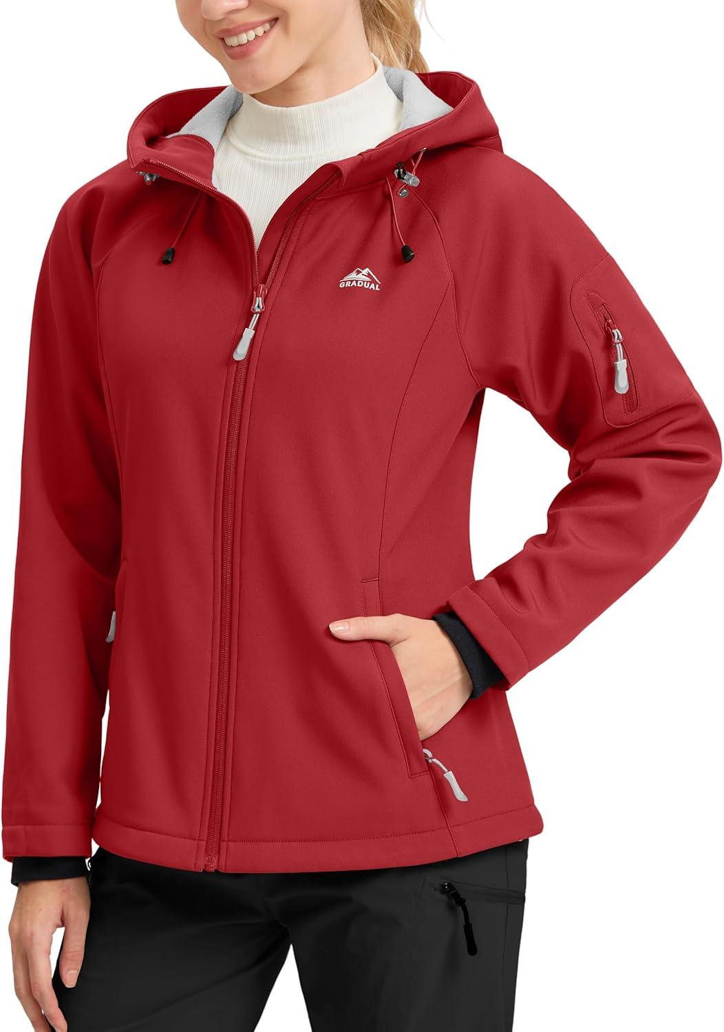imageG Gradual Womens Fleece Lined Softshell Jacket Windproof Warm Light Waterproof Hooded Jacket for Women WinterFallSpringRed