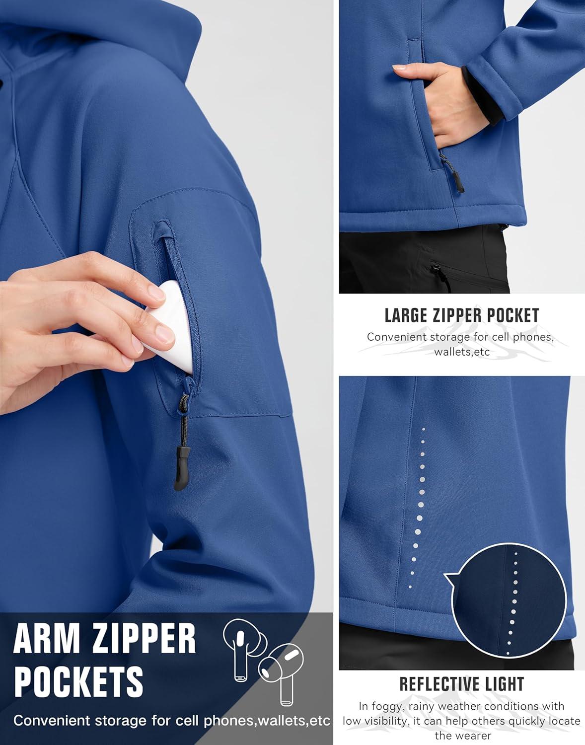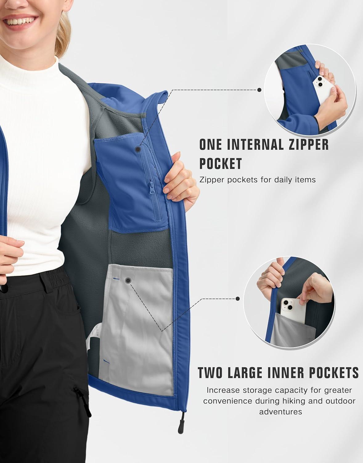 G Gradual Women’s Fleece Lined Softshell Jacket Windproof Warm Light Waterproof Hooded Jacket for Women Winter/Fall/Spring(Royal Blue)