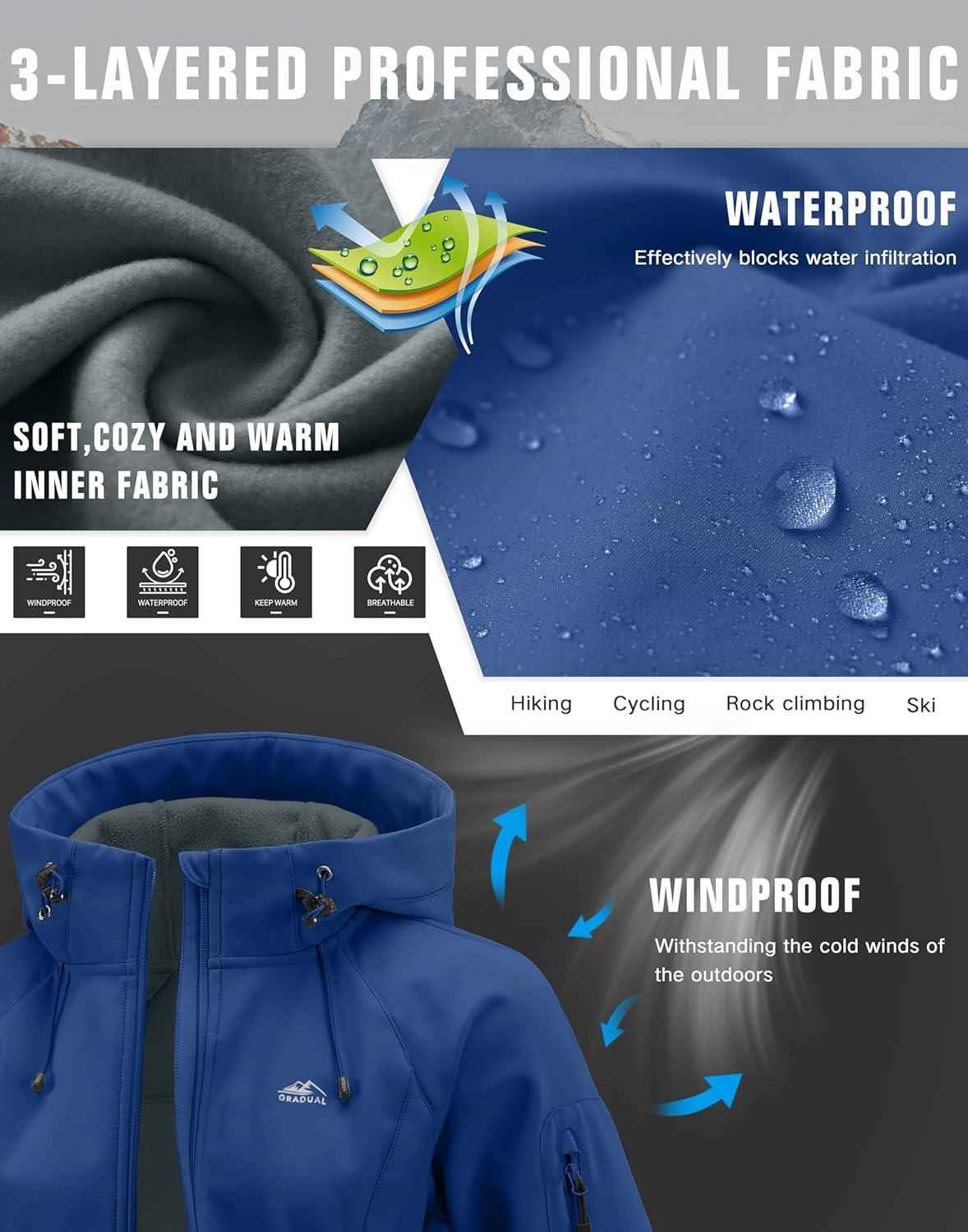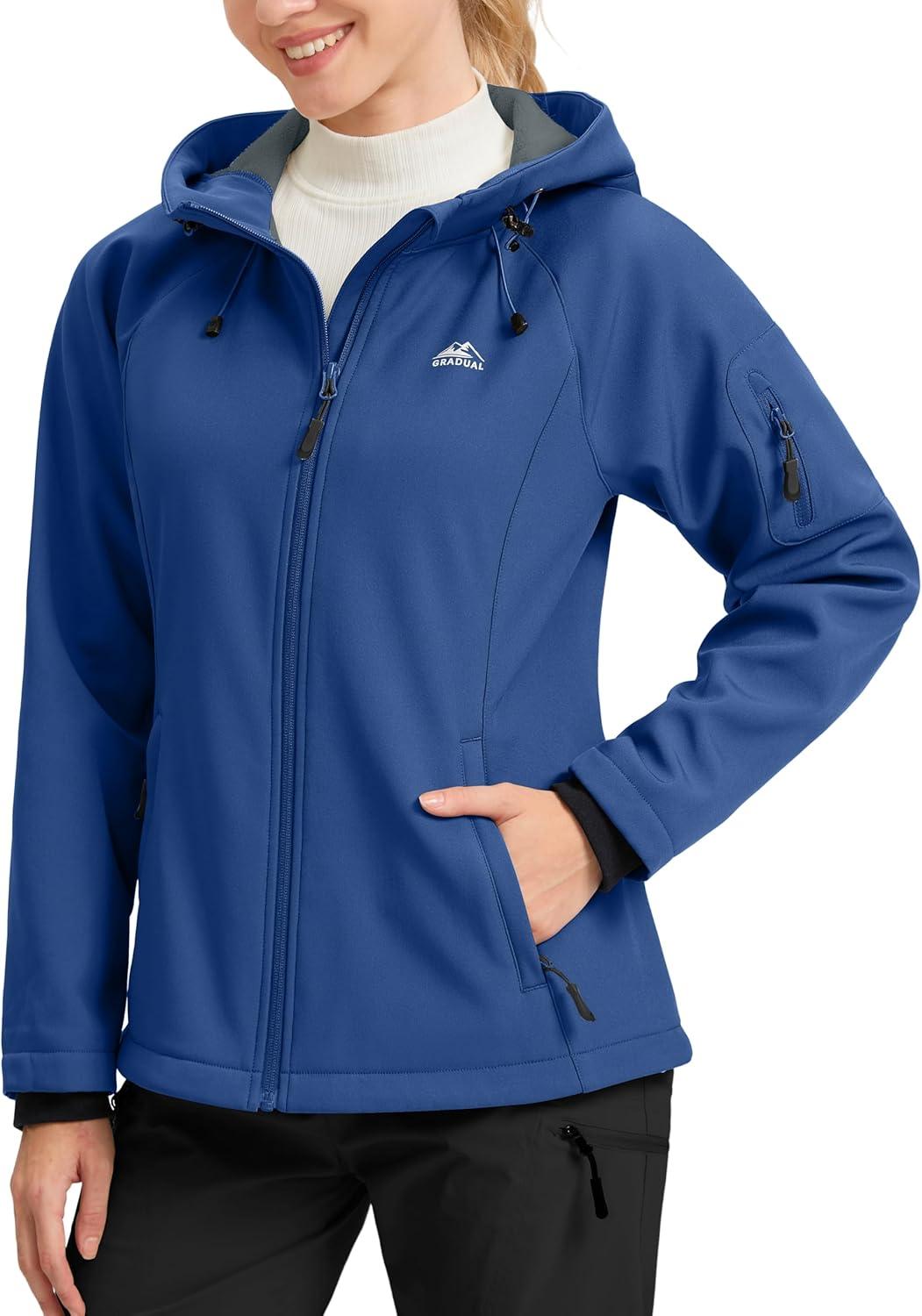 imageG Gradual Womens Fleece Lined Softshell Jacket Windproof Warm Light Waterproof Hooded Jacket for Women WinterFallSpringRoyal Blue