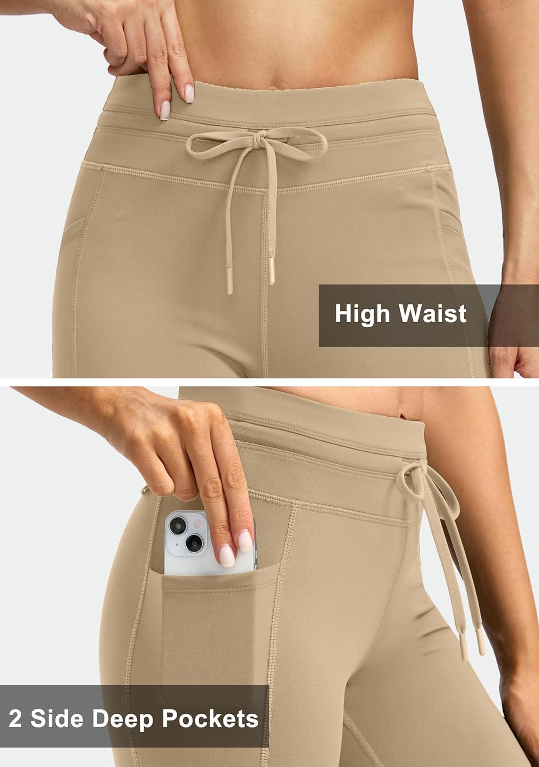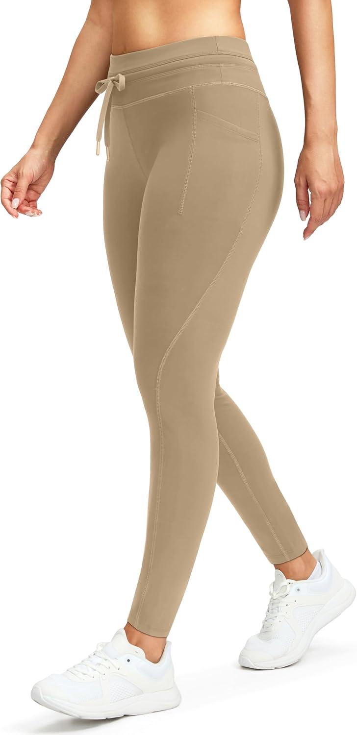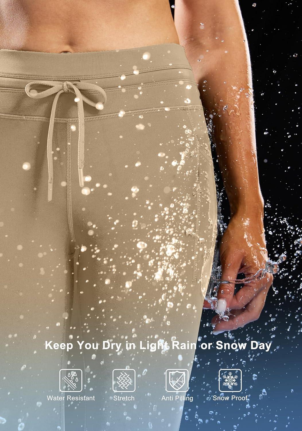 G Gradual Women’s Fleece Lined Winter Leggings High Waisted Water Resistant Thermal Hiking Ski Pants for Women with Pockets(D-khaki)