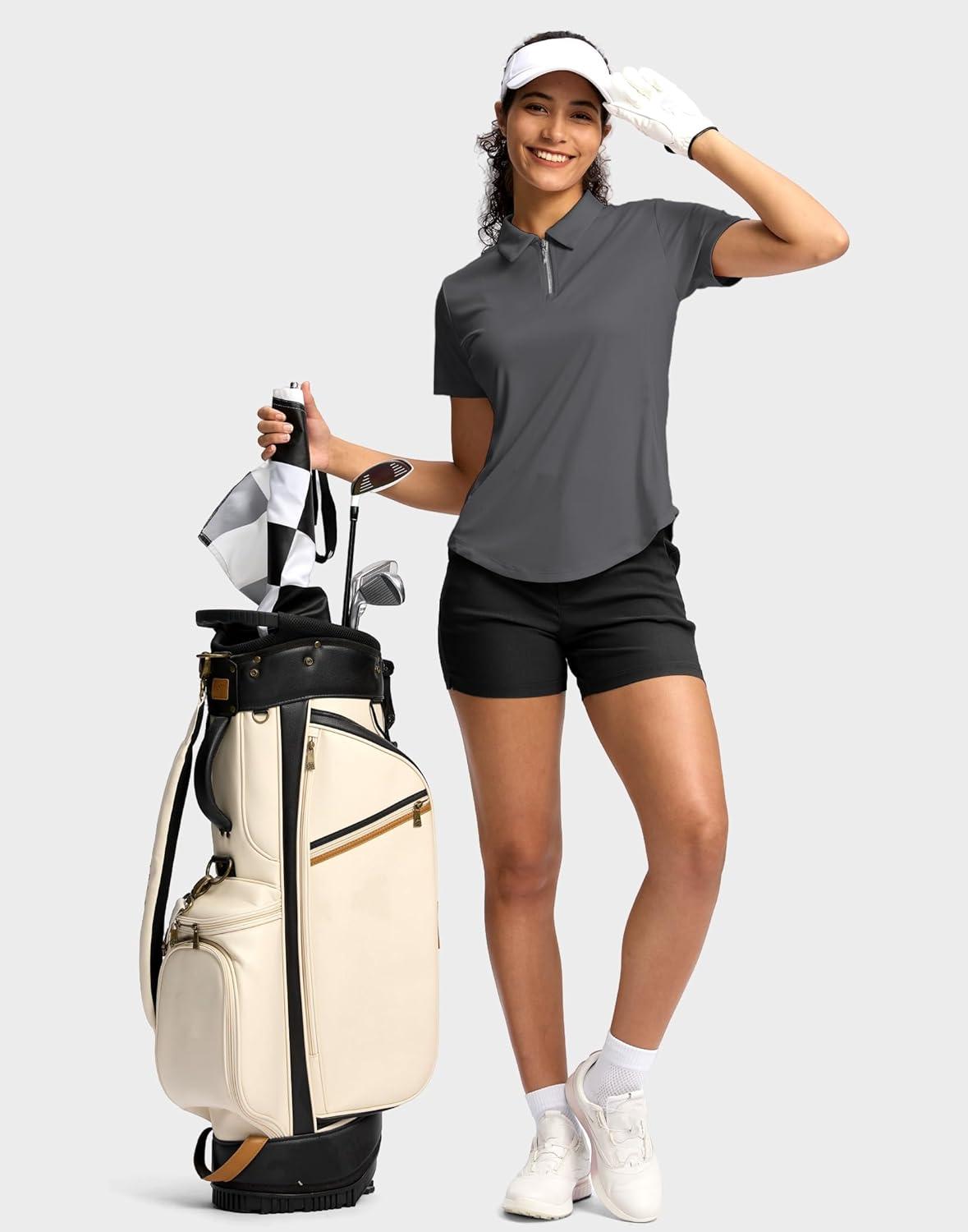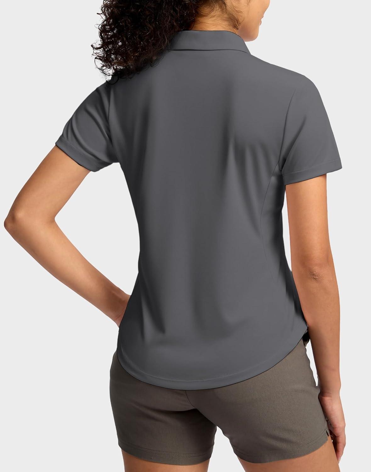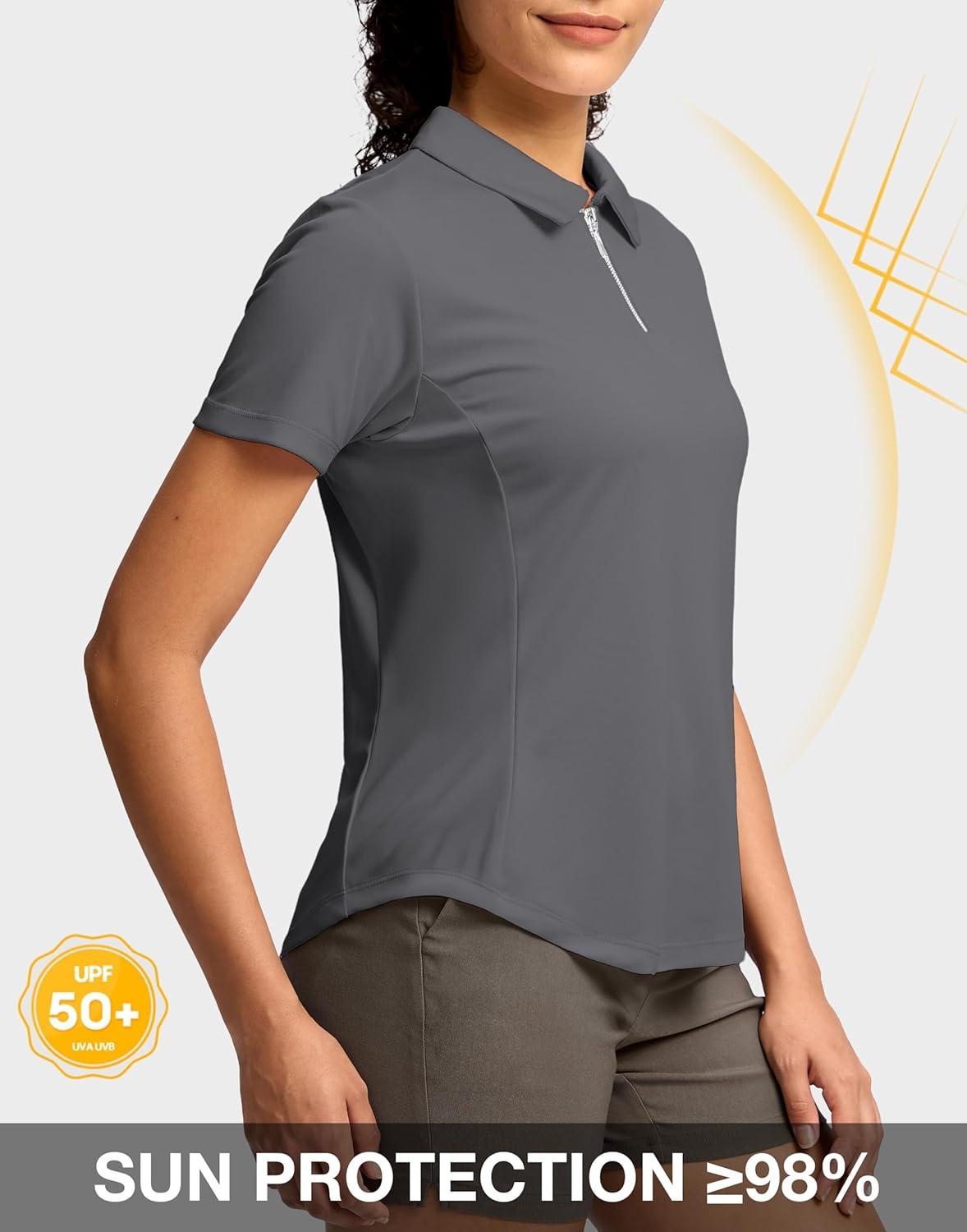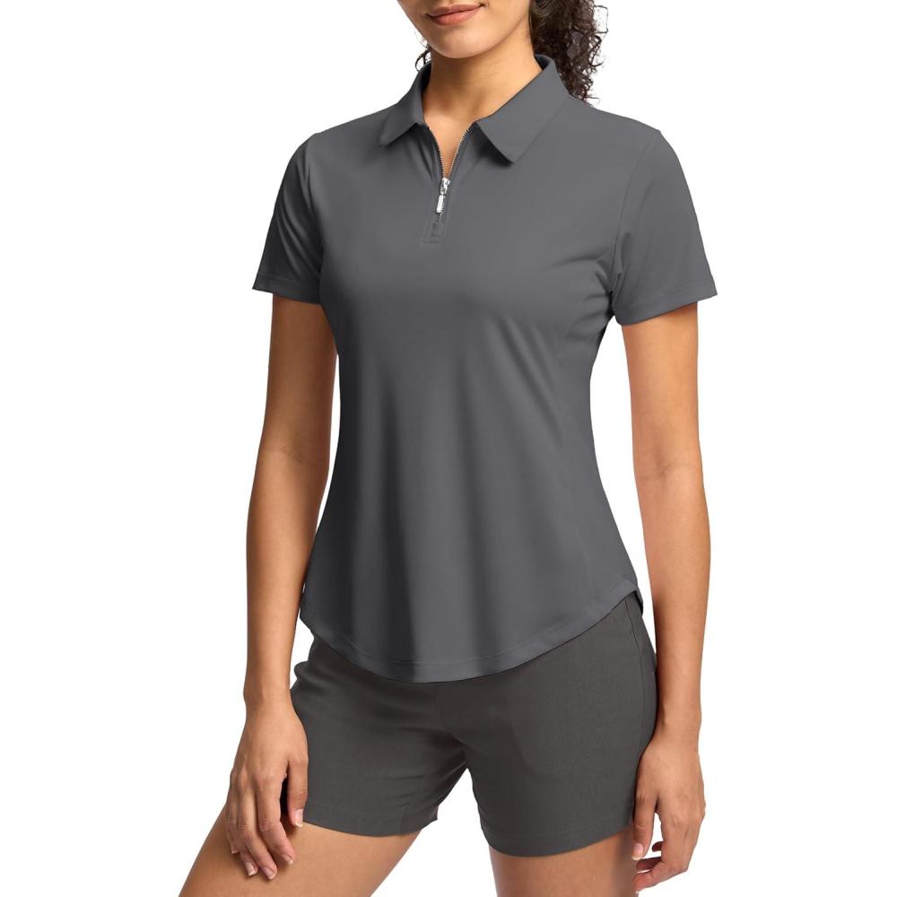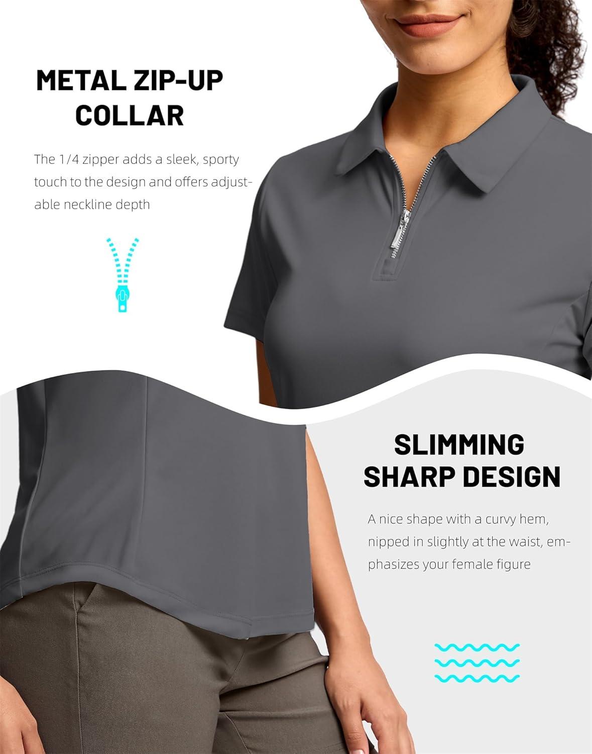 G Gradual Womens Golf Shirt Metal Zip Up Polo Short Sleeve Tennis Work Athletic Collared Top Quick Dry Lightweight(Dark Grey)