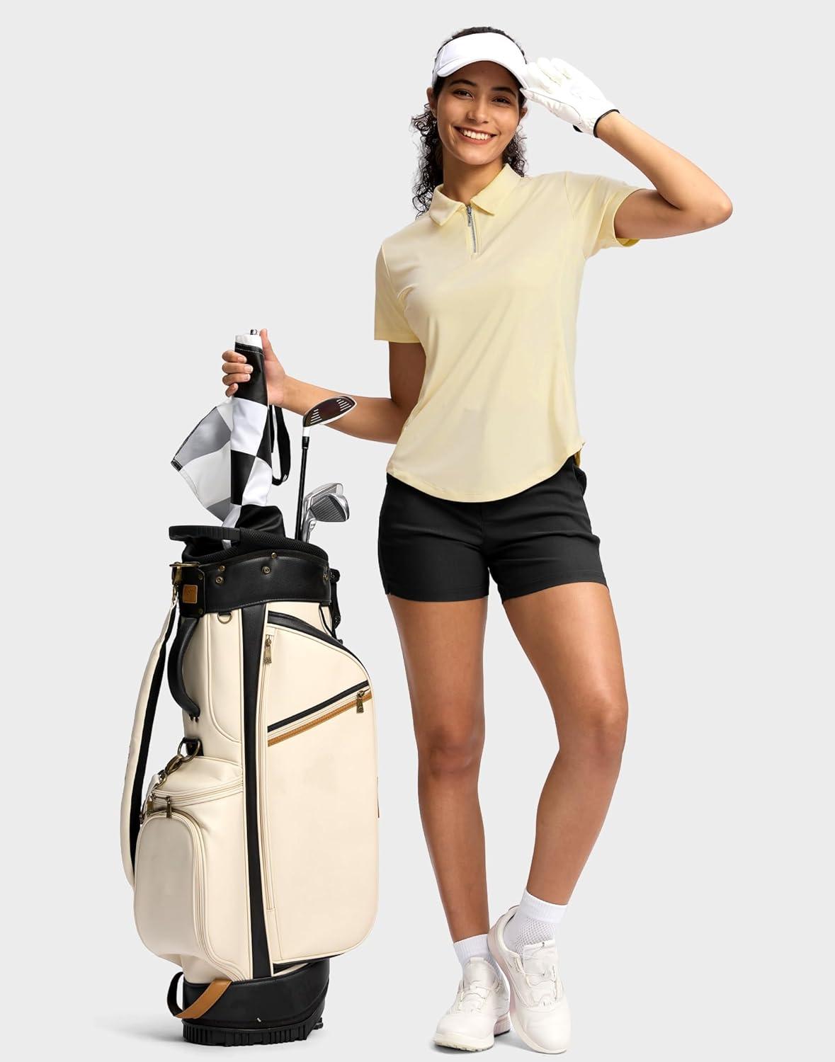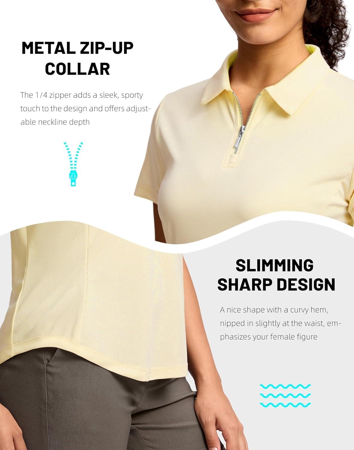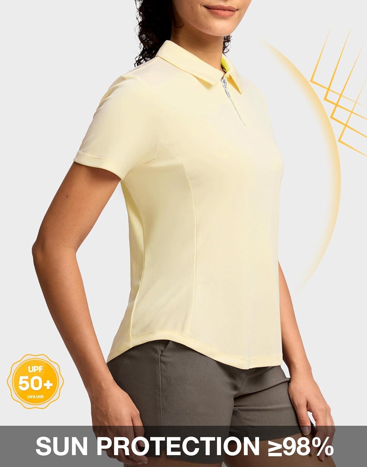 G Gradual Womens Golf Shirt Metal Zip Up Polo Short Sleeve Tennis Work Athletic Collared Top Quick Dry Lightweight(Light Yellow)