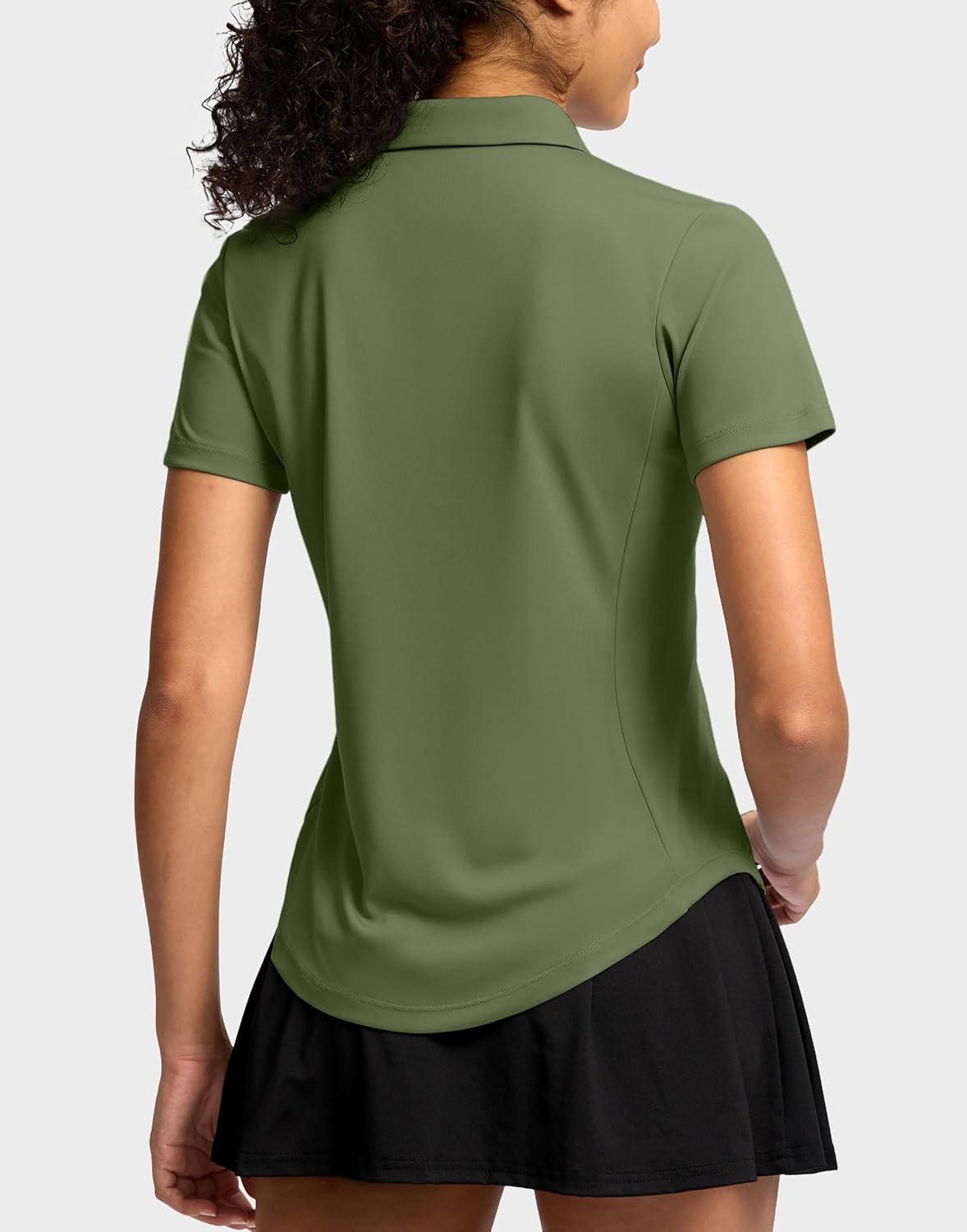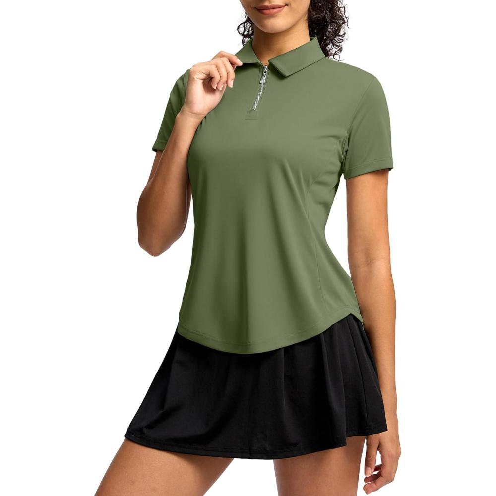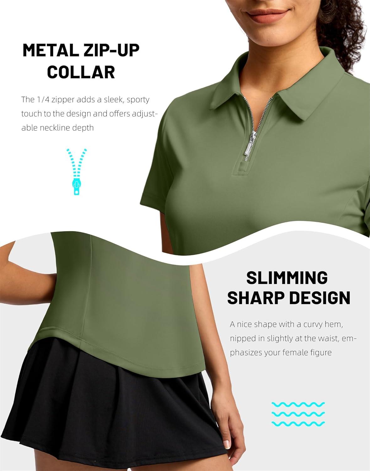 G Gradual Womens Golf Shirt Metal Zip Up Polo Short Sleeve Tennis Work Athletic Collared Top Quick Dry Lightweight(Olive)