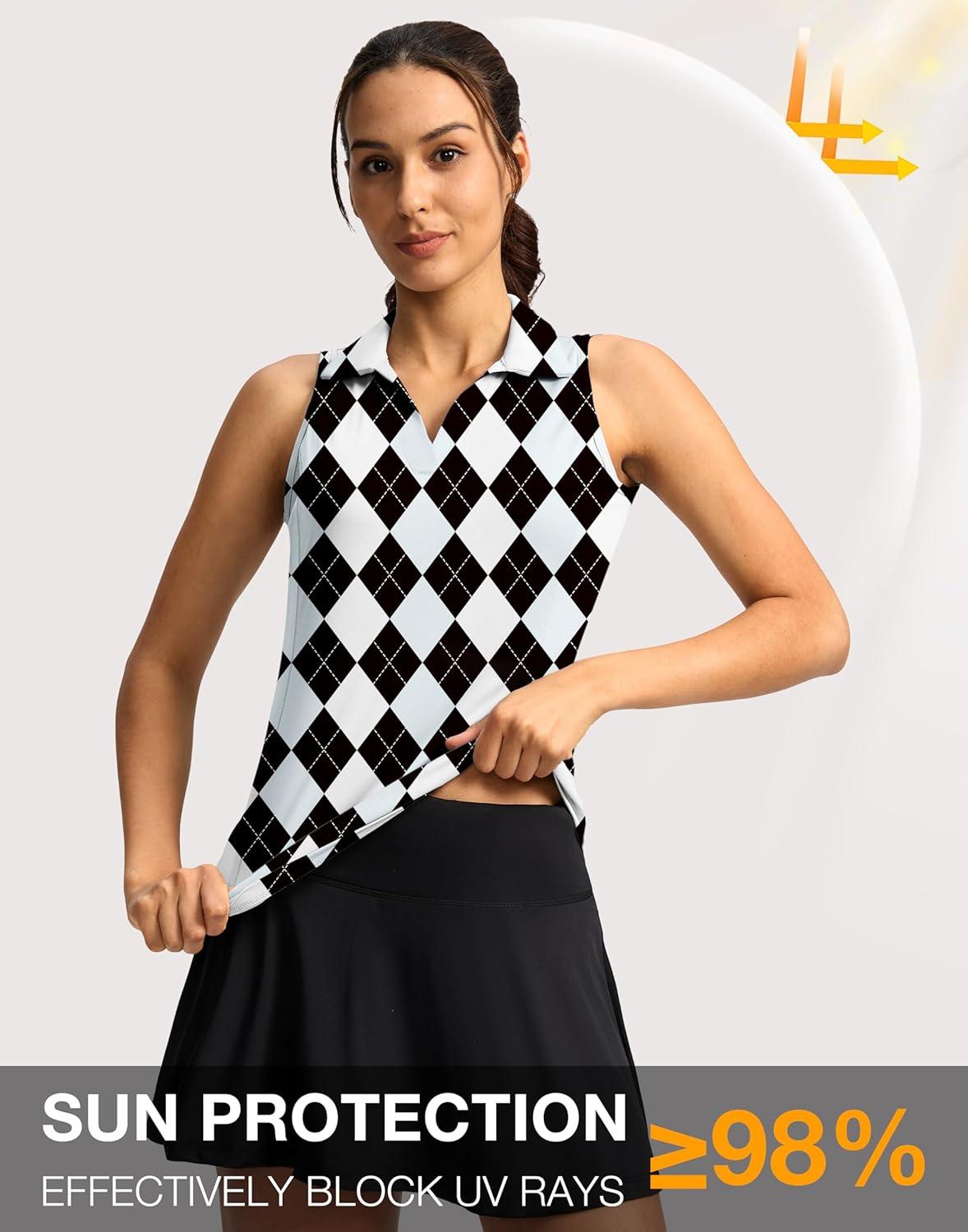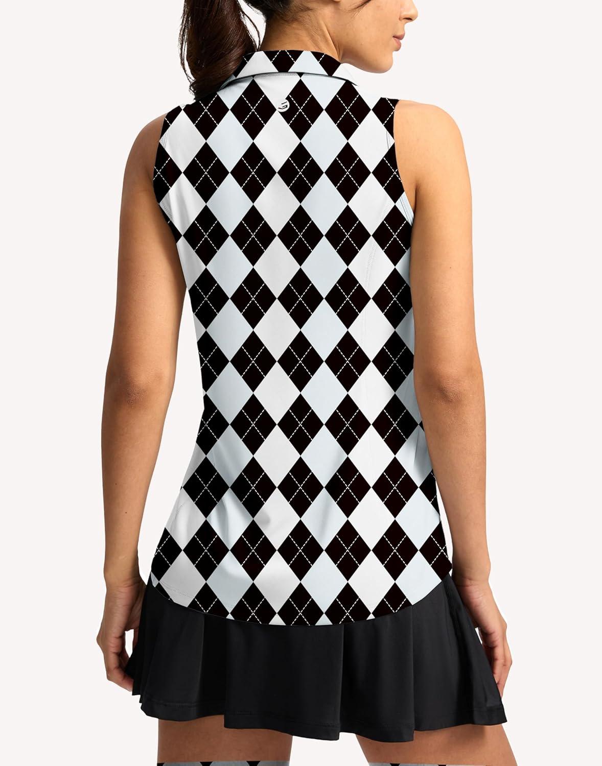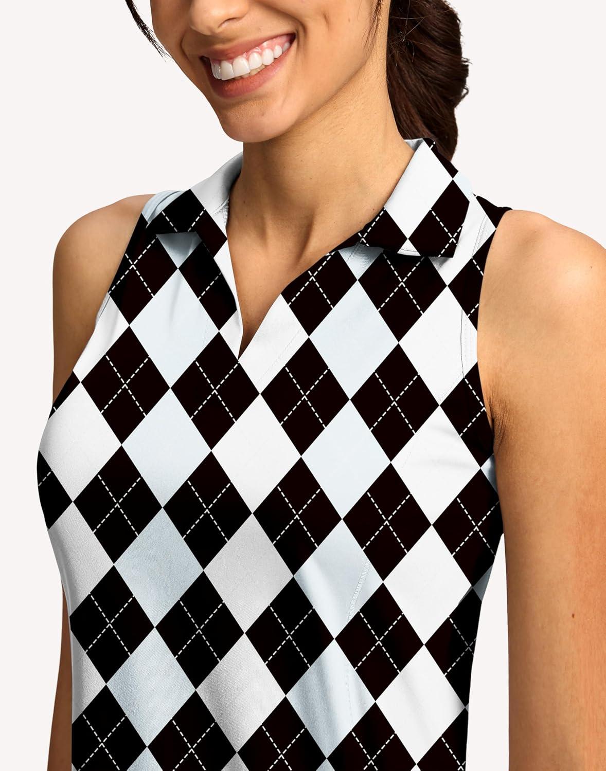 G Gradual Women's Golf Shirt Sleeveless Lightweight V Neck Tennis Polo Shirts with Collar Quick Dry Athletic Tops for Women(Black Blue Argyle)