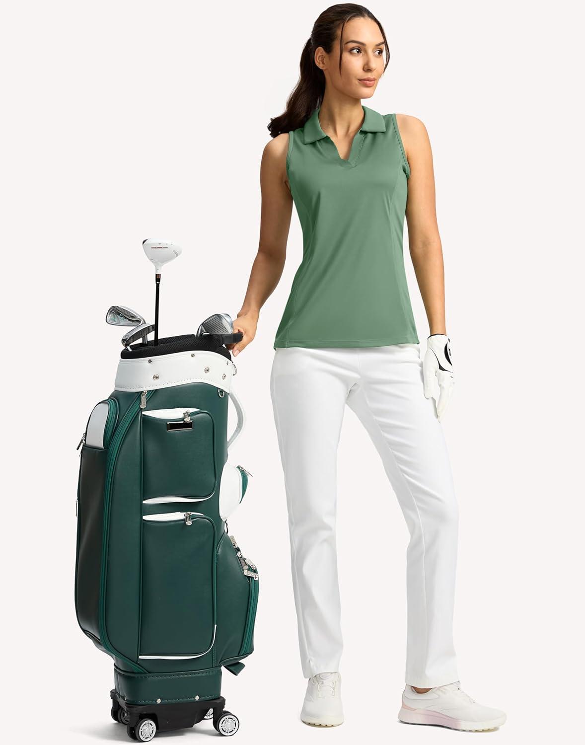 G Gradual Women's Golf Shirt Sleeveless Lightweight V Neck Tennis Polo Shirts with Collar Quick Dry Athletic Tops for Women(Green)