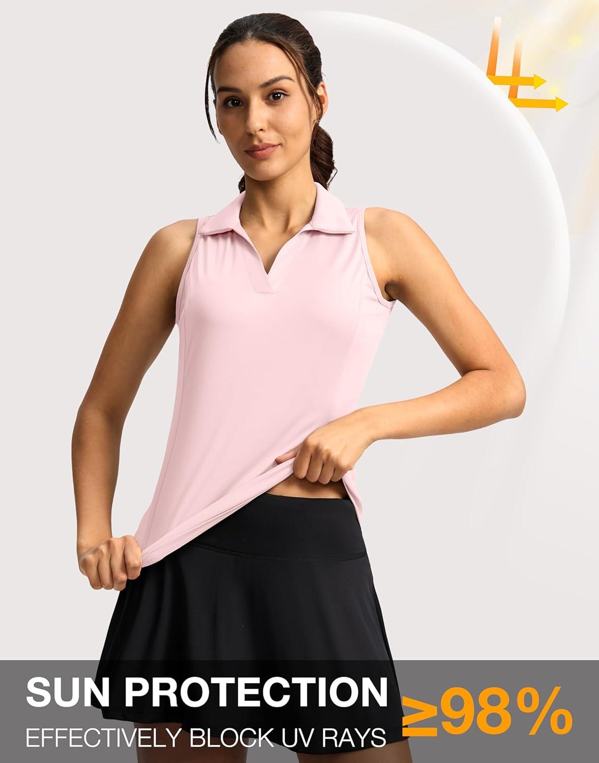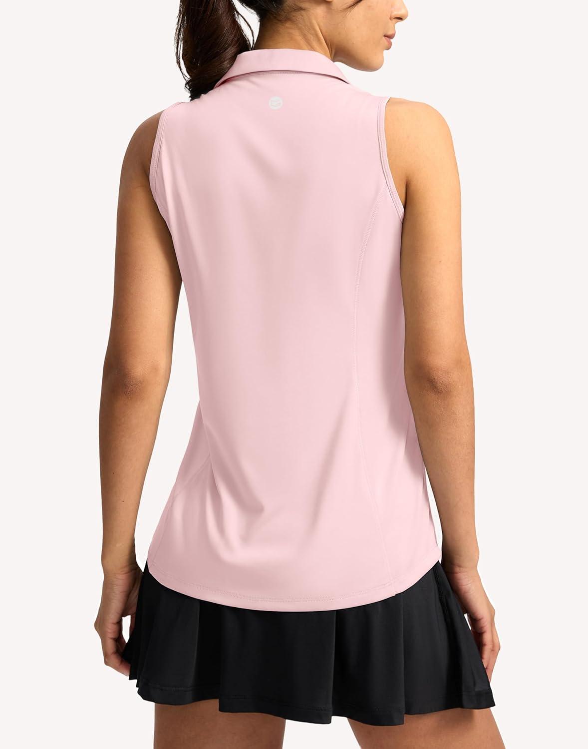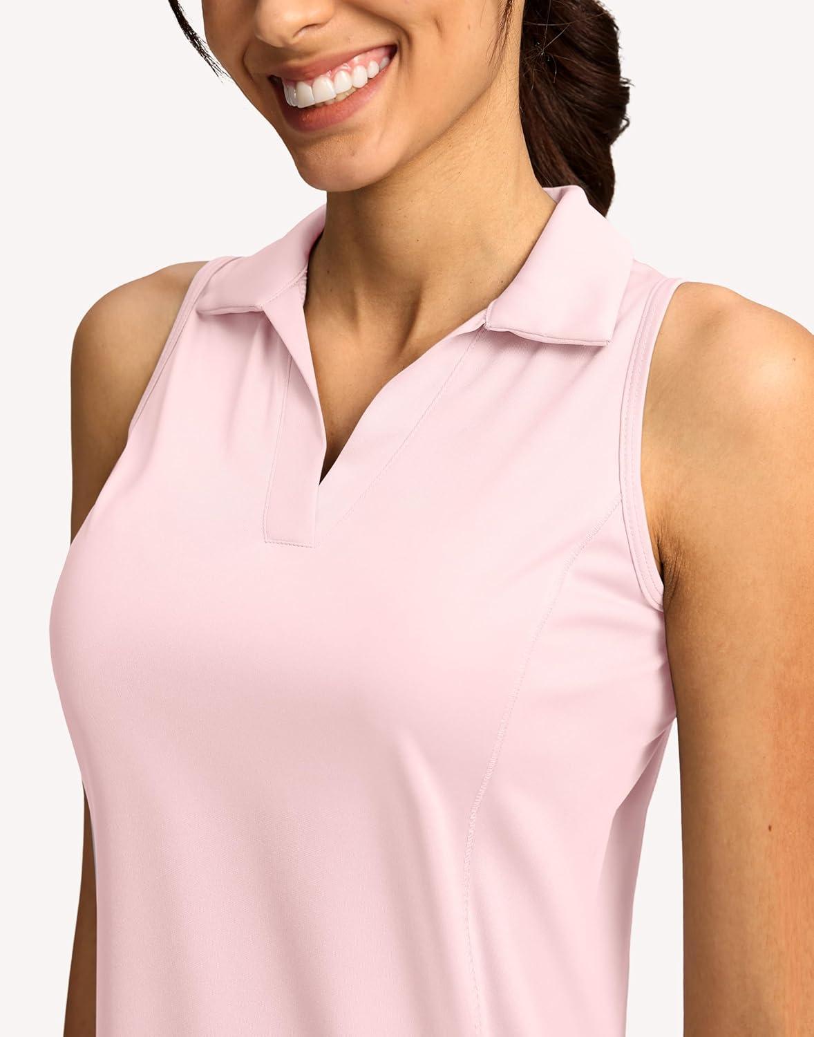 G Gradual Women's Golf Shirt Sleeveless Lightweight V Neck Tennis Polo Shirts with Collar Quick Dry Athletic Tops for Women(Pink)