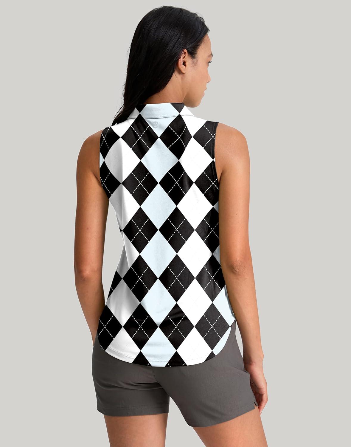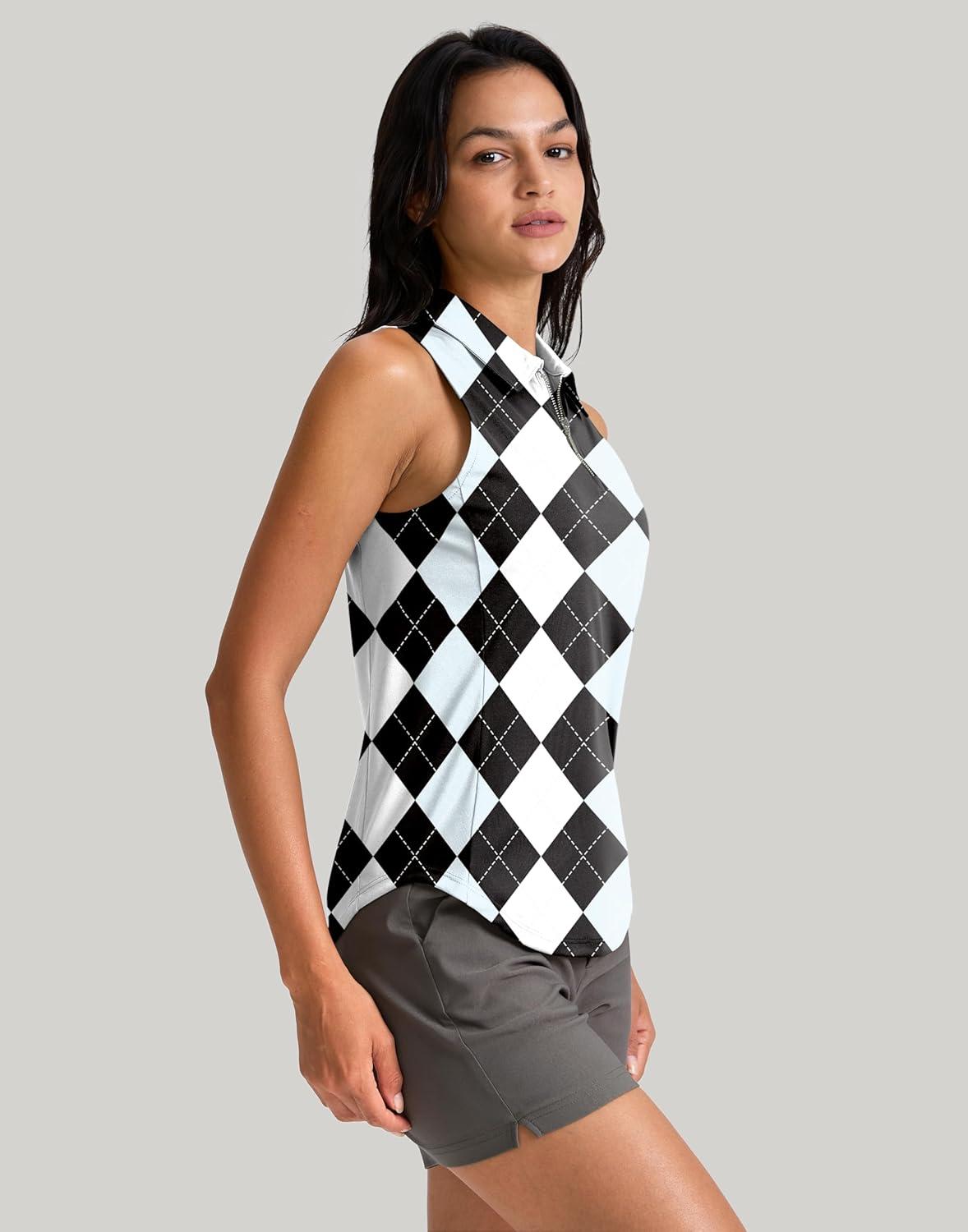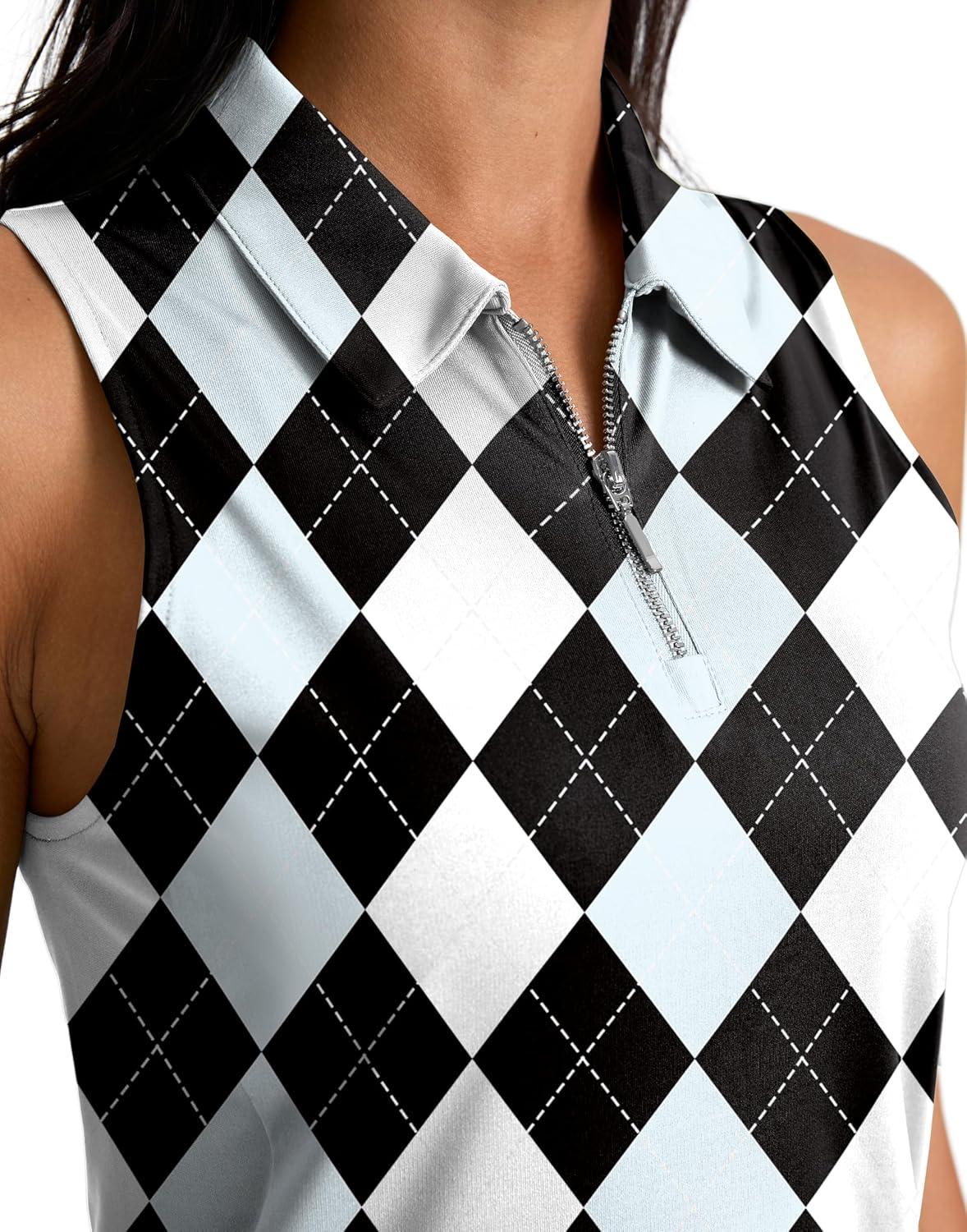 G Gradual Womens Golf Shirt Sleeveless Zip Up Polo Shirts for Women Collared Lightweight Tennis Athletic Tank Top(Grey Argyle)