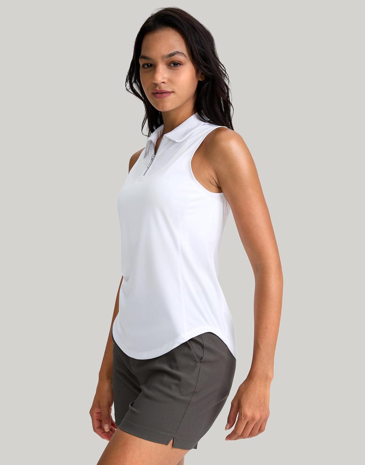 G Gradual Womens Golf Shirt Sleeveless Zip Up Polo Shirts for Women Collared Lightweight Tennis Athletic Tank Top(White)