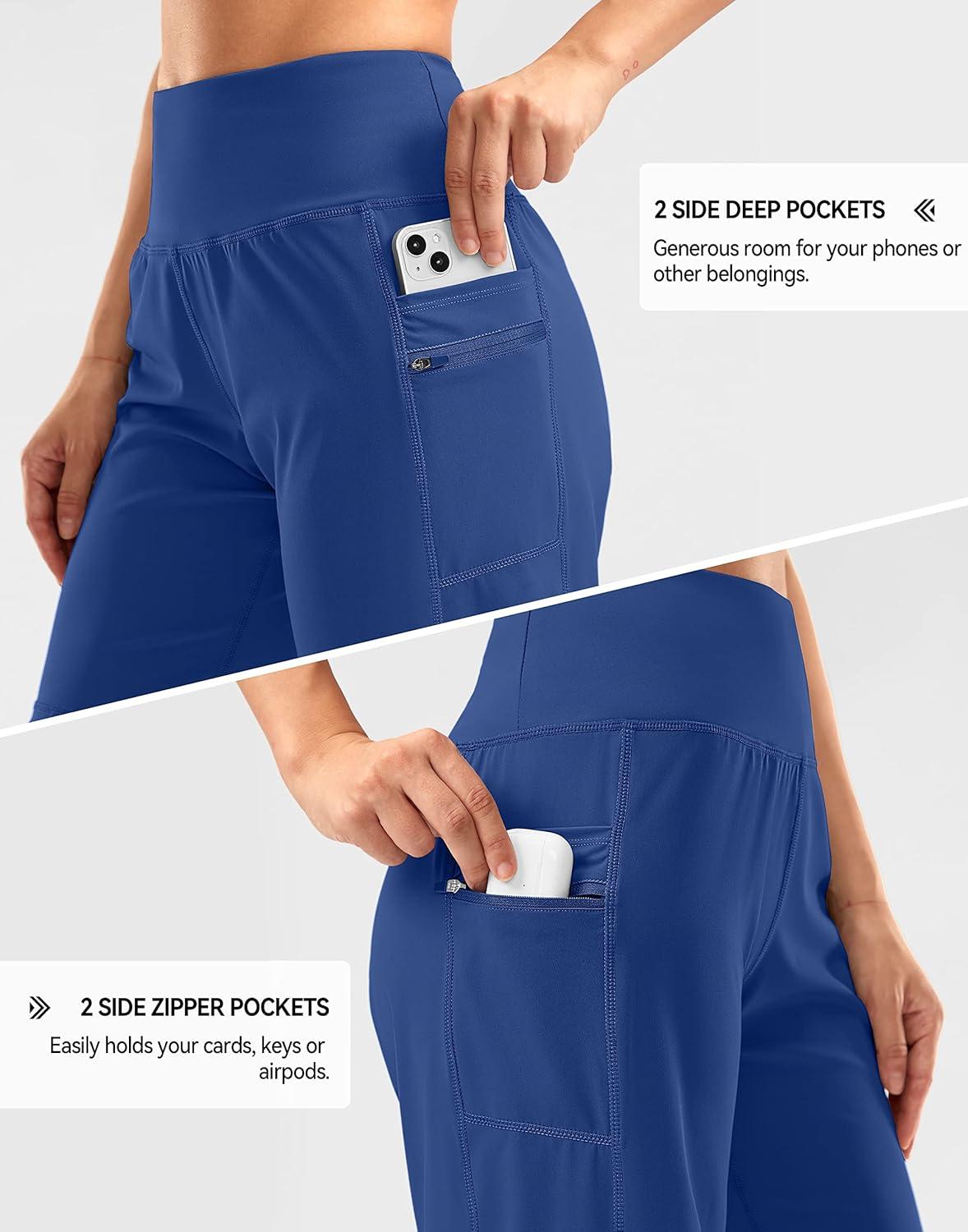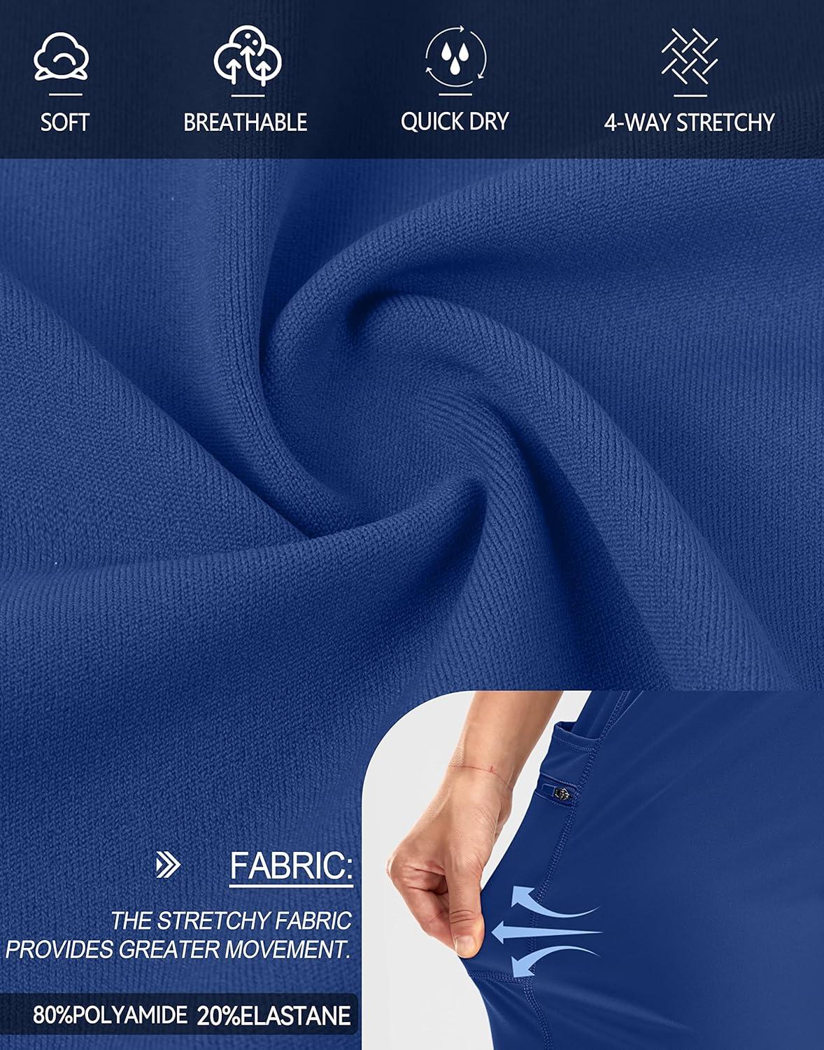 G Gradual Women’s High Waisted 9″ Bermuda Shorts with Zipper Pockets Athletic Workout Long Shorts for Women Knee Length(Blue)