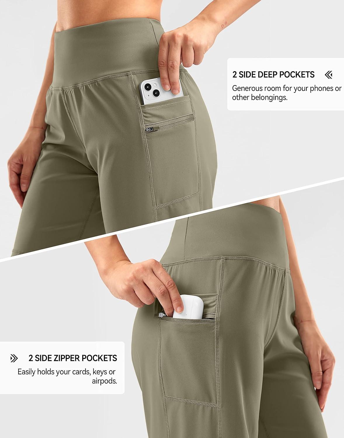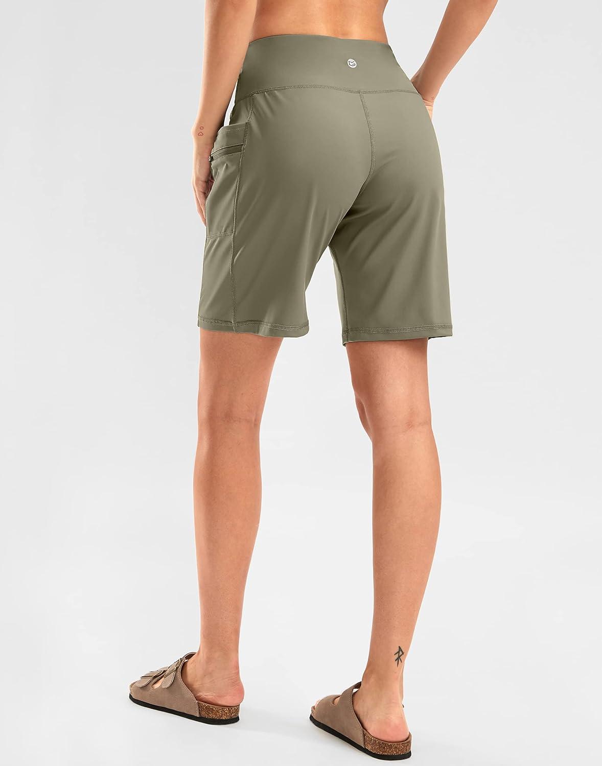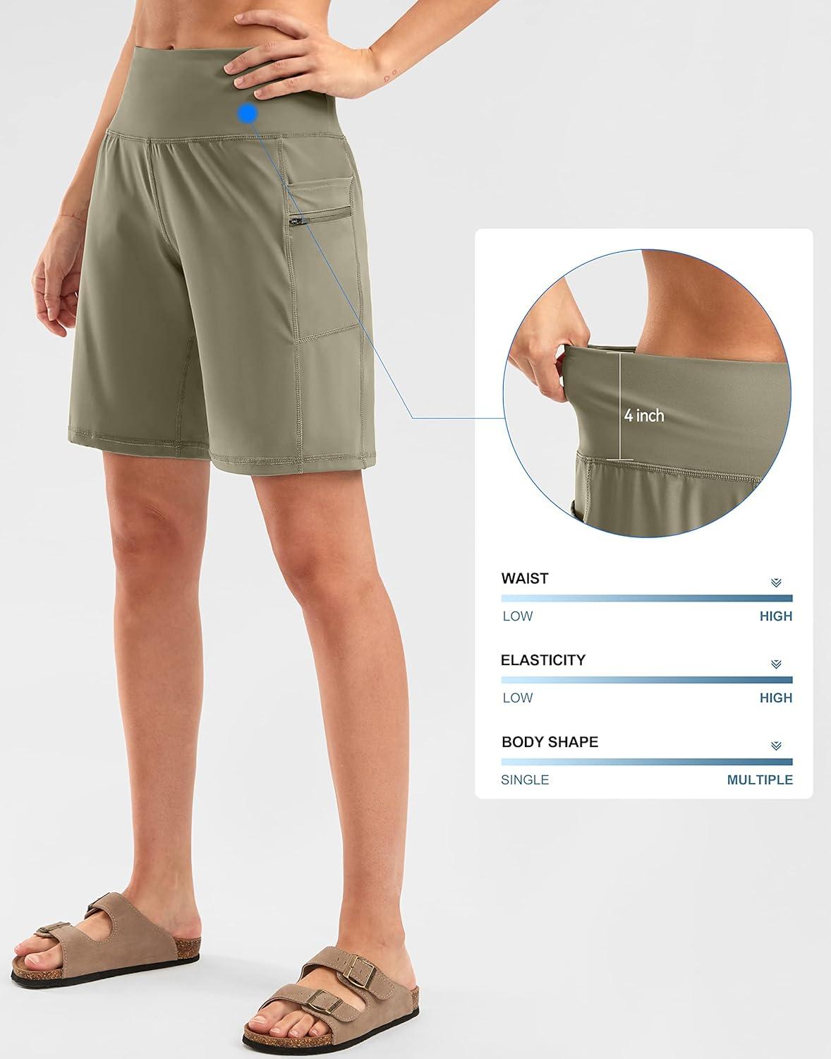 G Gradual Women’s High Waisted 9″ Bermuda Shorts with Zipper Pockets Athletic Workout Long Shorts for Women Knee Length(Dark Khaki)
