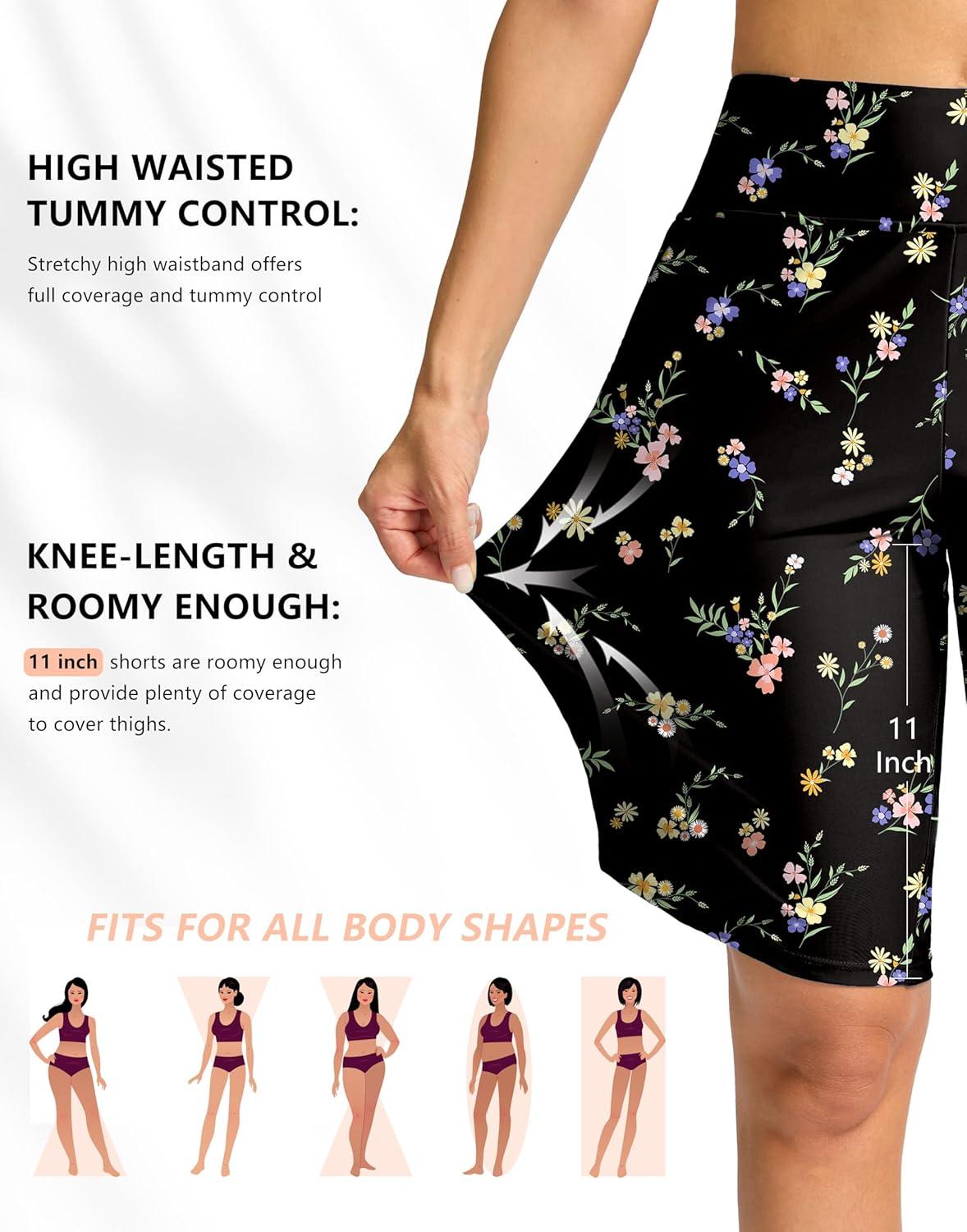 G Gradual Women’s High Waisted Swim Board Shorts 11″ Knee Length Beach Swimming Long Shorts for Women with Pockets Liner(Black Floral)
