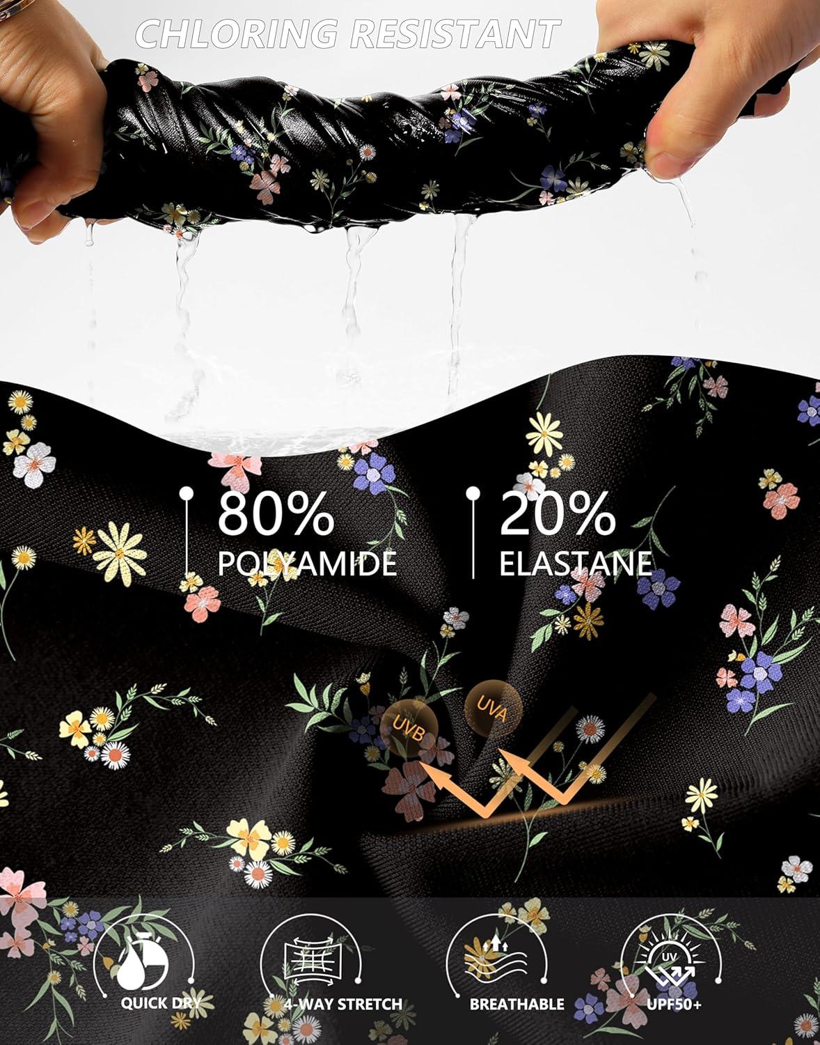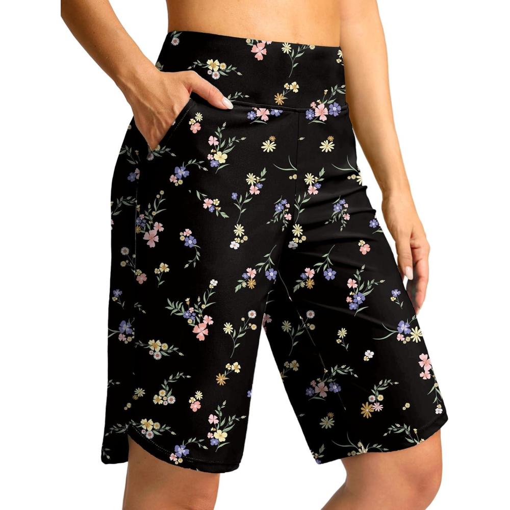imageG Gradual Womens High Waisted Swim Board Shorts 11 Knee Length Beach Swimming Long Shorts for Women with Pockets LinerBlack Floral
