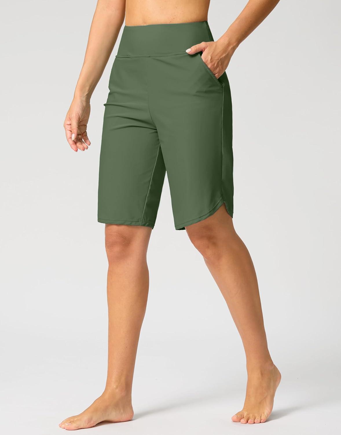 imageG Gradual Womens High Waisted Swim Board Shorts 11 Knee Length Beach Swimming Long Shorts for Women with Pockets LinerGreen