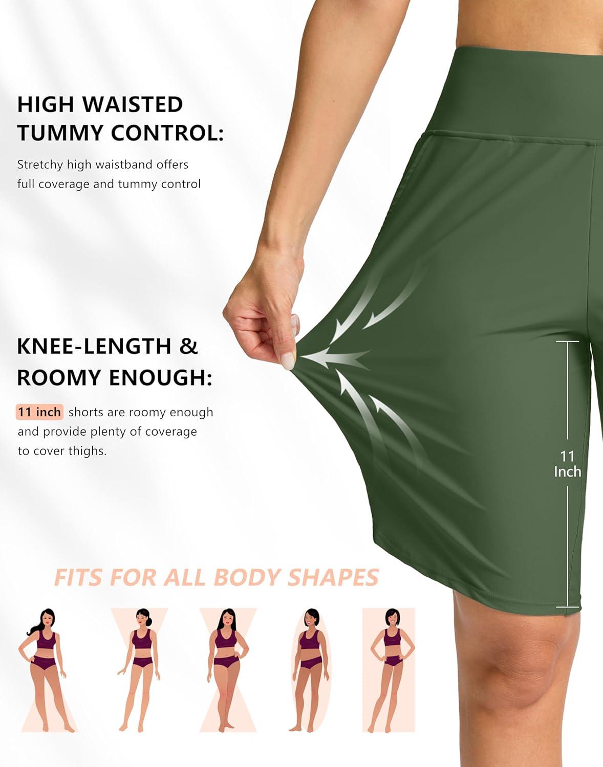 G Gradual Women's High Waisted Swim Board Shorts 11" Knee Length Beach Swimming Long Shorts for Women with Pockets Liner(Green)