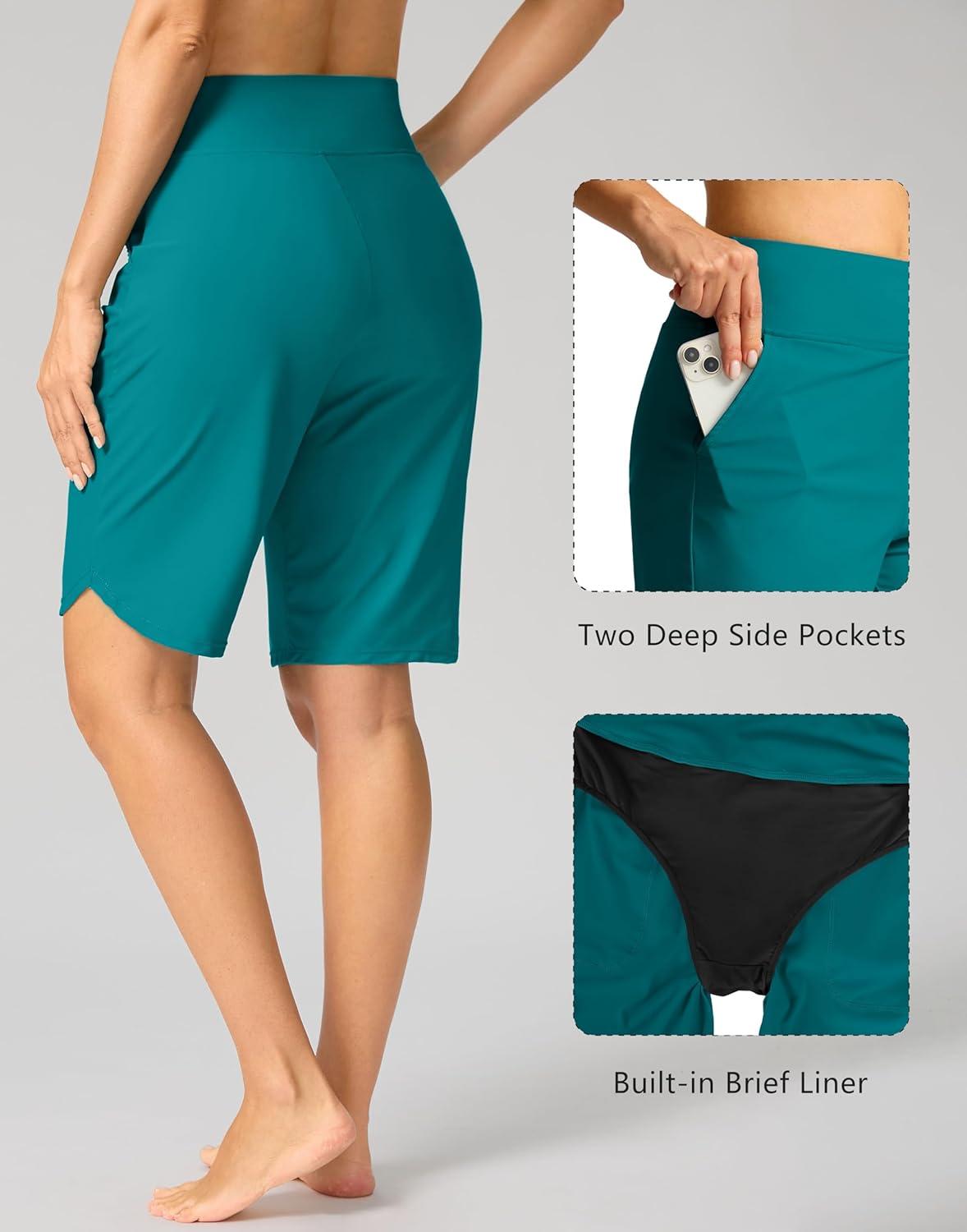imageG Gradual Womens High Waisted Swim Board Shorts 11quot Knee Length Beach Swimming Long Shorts for Women with Pockets LinerLake Blue