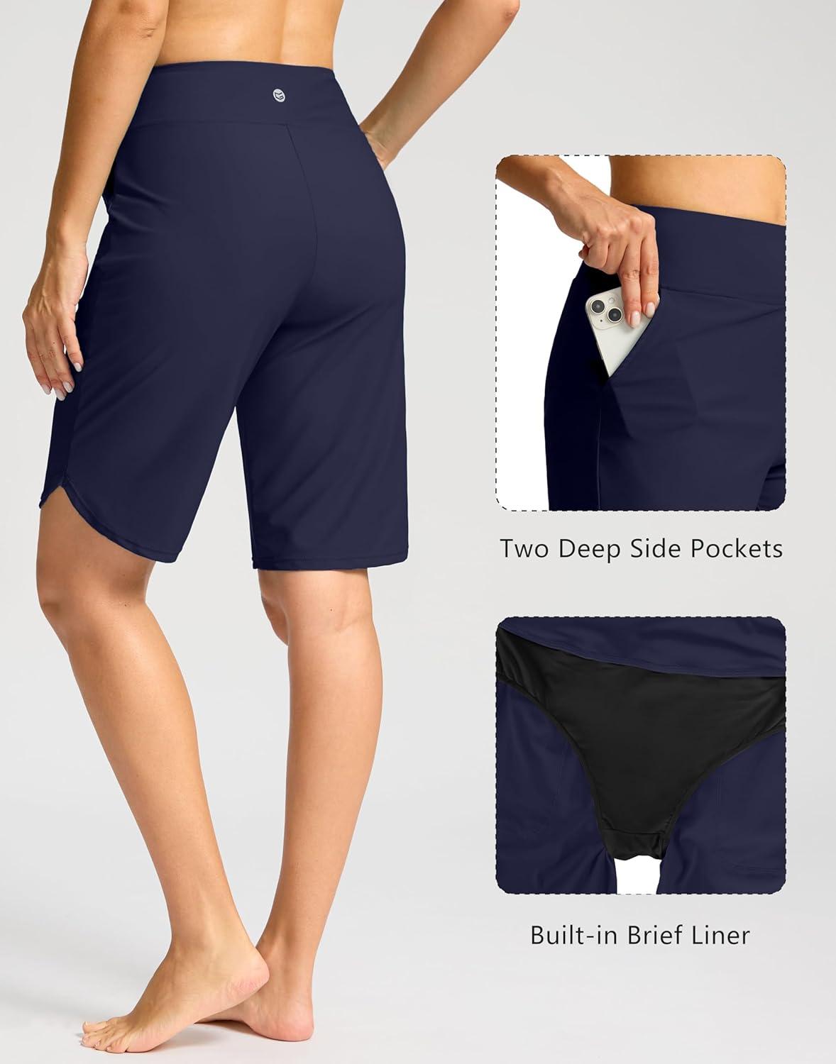 imageG Gradual Womens High Waisted Swim Board Shorts 11 Knee Length Beach Swimming Long Shorts for Women with Pockets LinerNavy