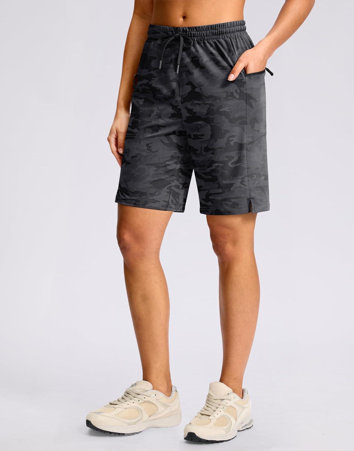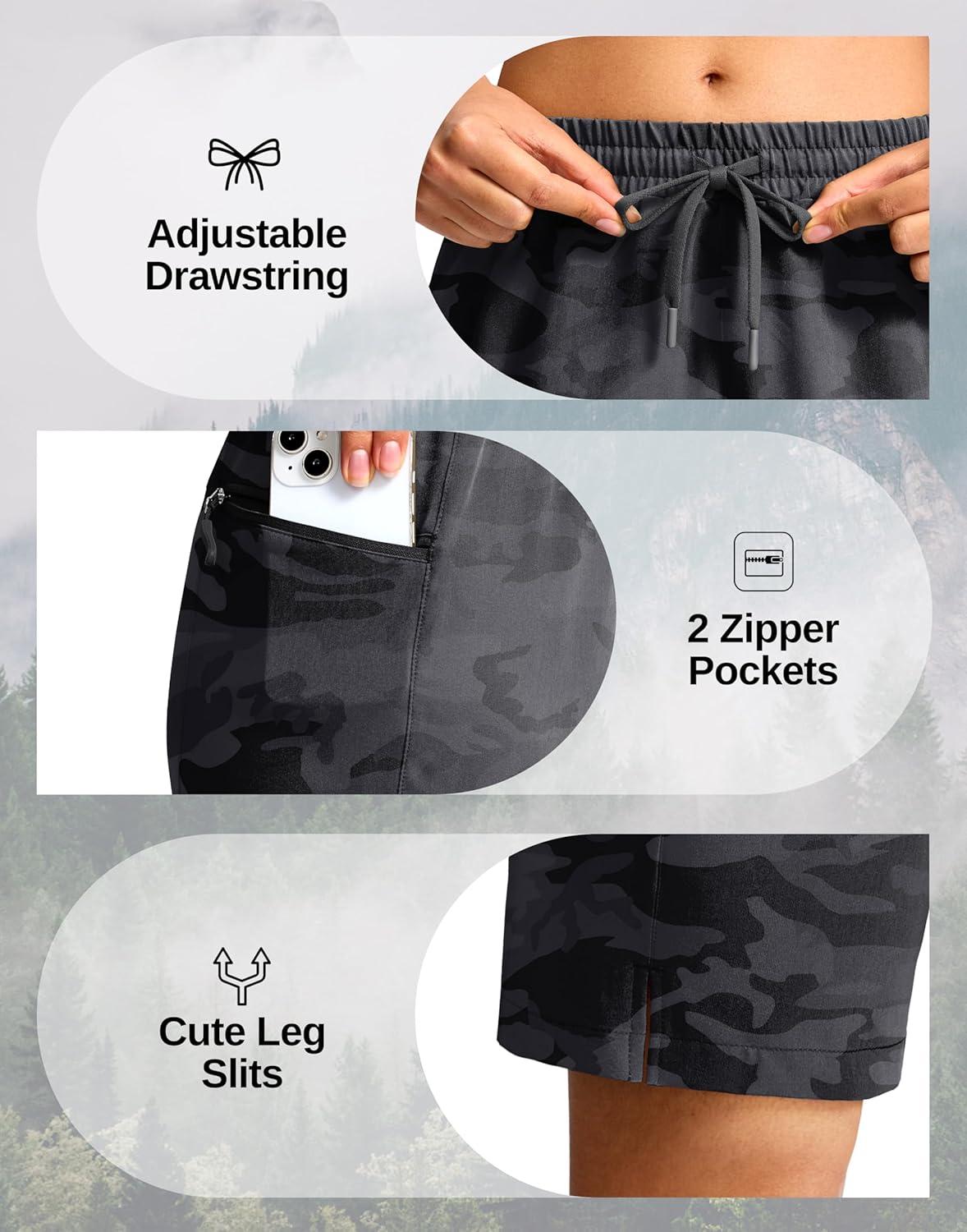 G Gradual Women’s Hiking Shorts 2 Zipper Pockets Quick Dry Lightweigh 9″ Bermuda Cargo Shorts Water Resistant Athletic Golf(Black Camo)
