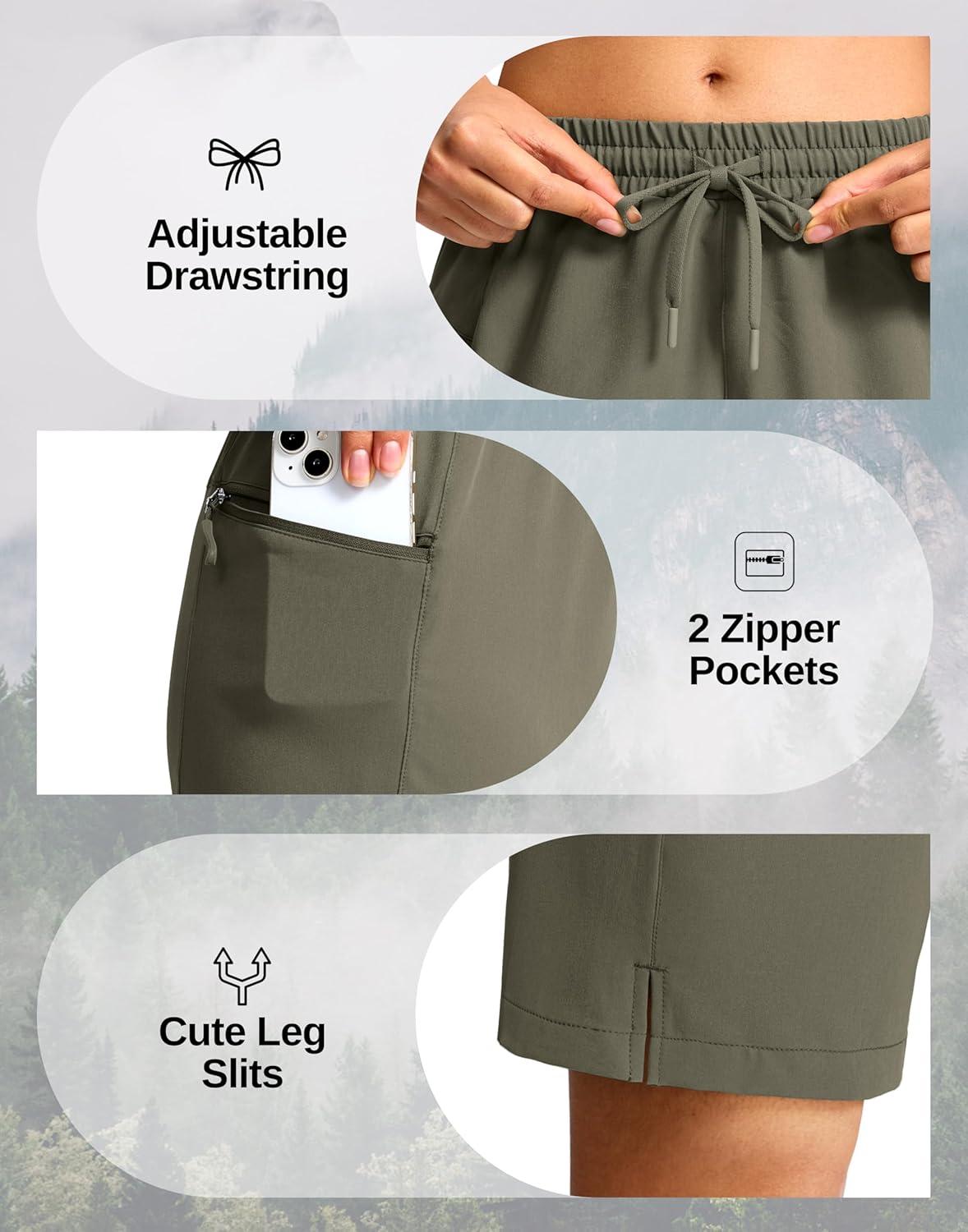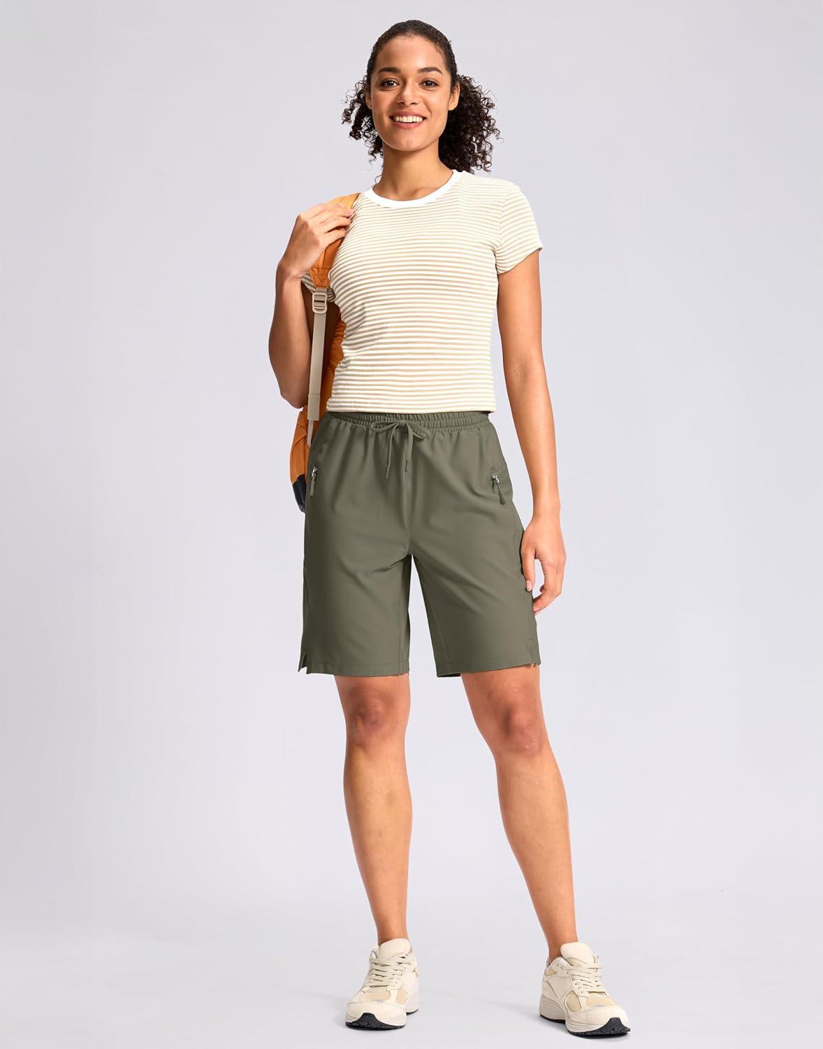 G Gradual Women’s Hiking Shorts 2 Zipper Pockets Quick Dry Lightweigh 9″ Bermuda Cargo Shorts Water Resistant Athletic Golf(Light Khaki Green)