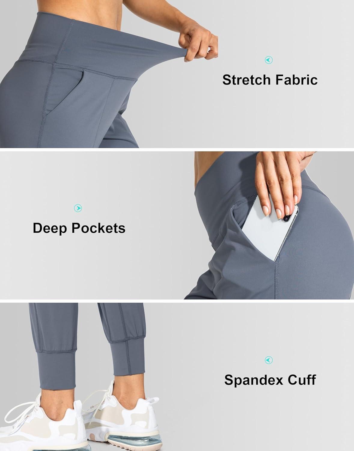 G Gradual Women’s Joggers High Waisted Yoga Pants with Pockets Loose Leggings for Women Workout, Athletic, Lounge(Dusty Blue)