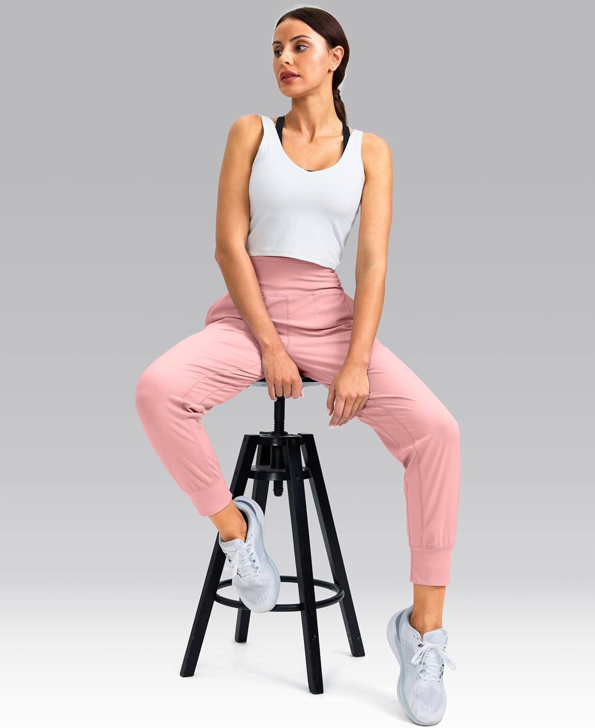 G Gradual Women's Joggers High Waisted Yoga Pants with Pockets Loose Leggings for Women Workout, Athletic, Lounge(Pink)