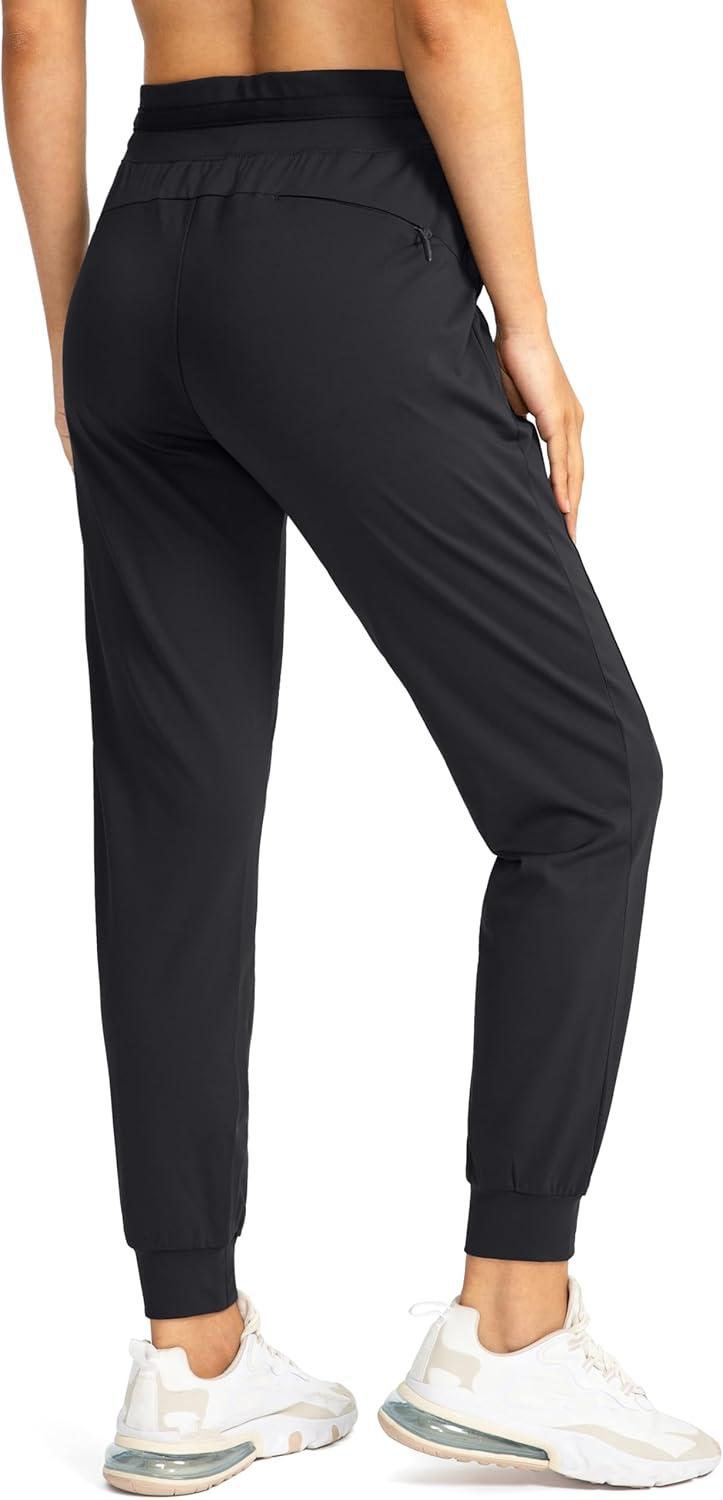 G Gradual Women's Joggers Pants with Zipper Pockets High Waisted Athletic Tapered Sweatpants for Women Workout Lounge(Black)