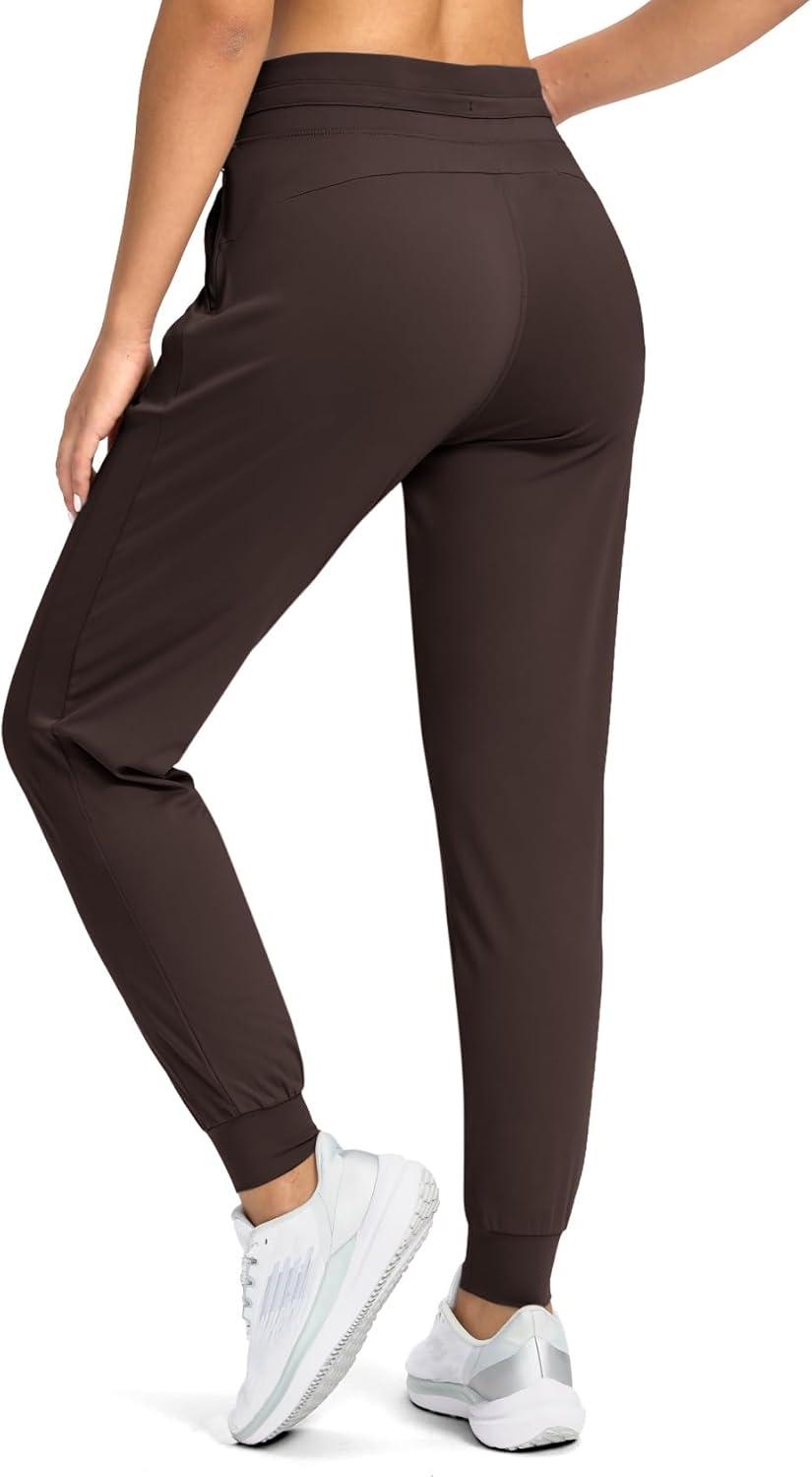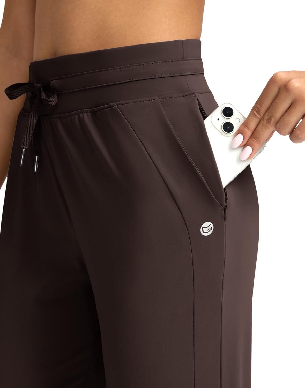 G Gradual Women's Joggers Pants with Zipper Pockets High Waisted Athletic Tapered Sweatpants for Women Workout Lounge(Brown)