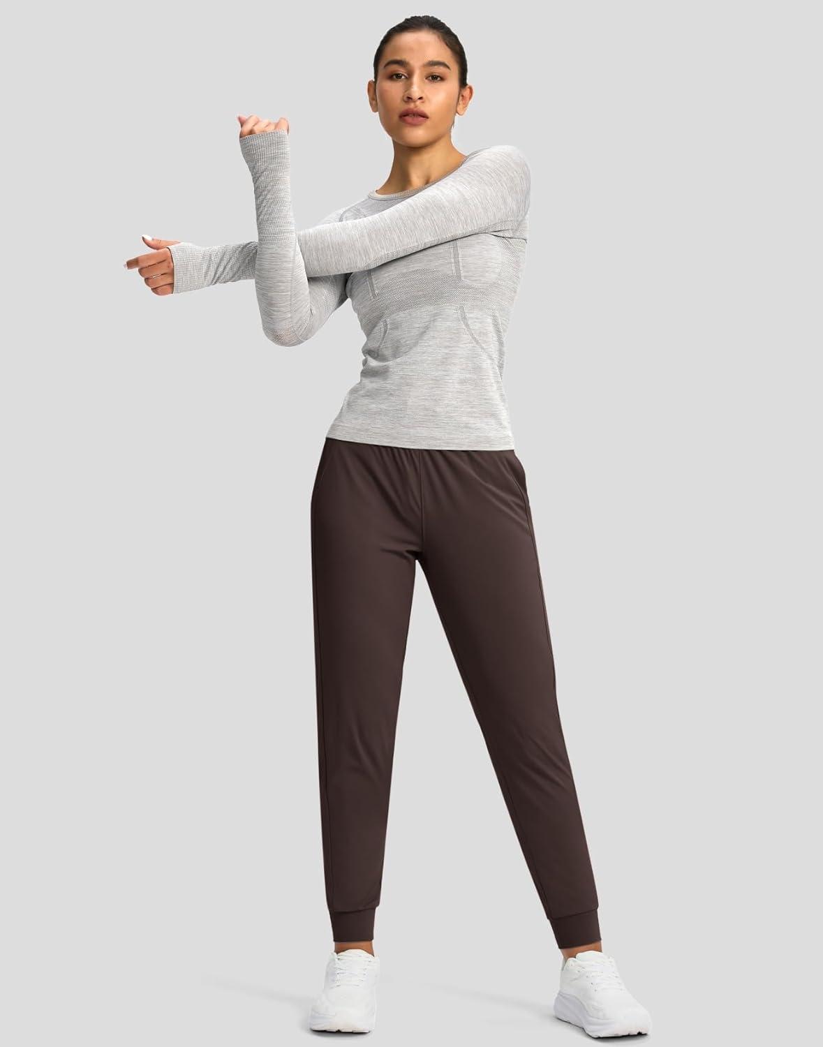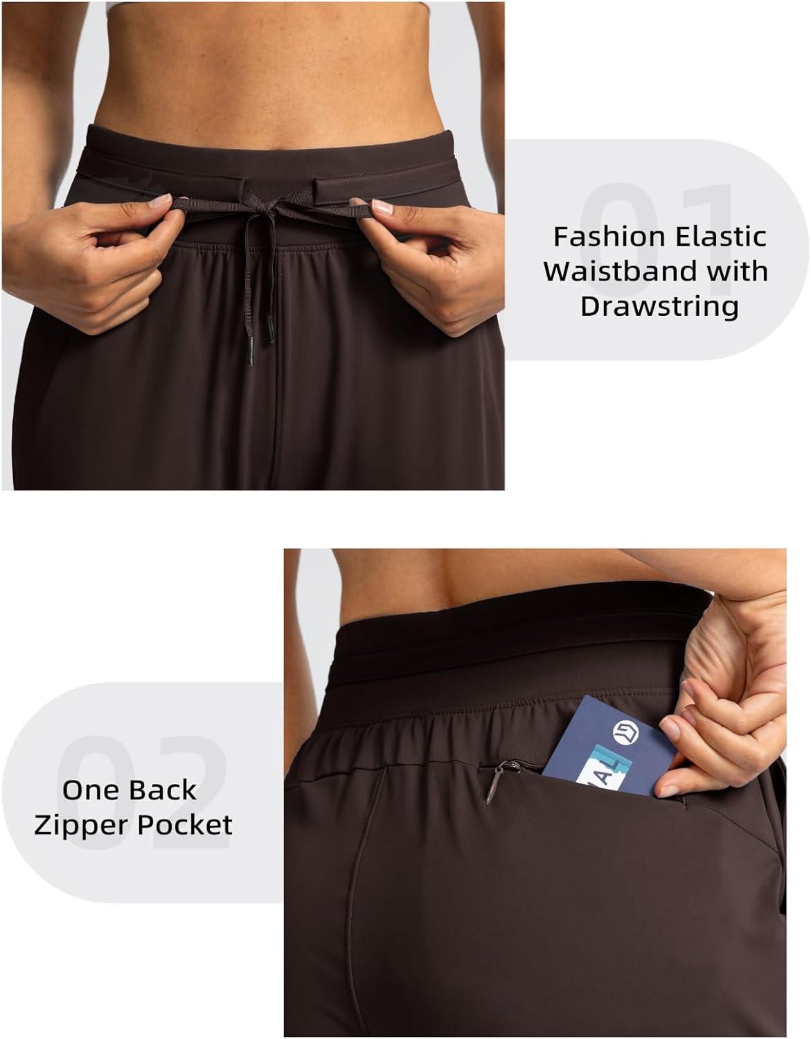 G Gradual Women’s Joggers Pants with Zipper Pockets High Waisted Athletic Tapered Sweatpants for Women Workout Lounge(Brown)
