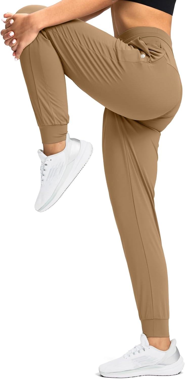 G Gradual Women’s Joggers Pants with Zipper Pockets High Waisted Athletic Tapered Sweatpants for Women Workout Lounge(Brown)