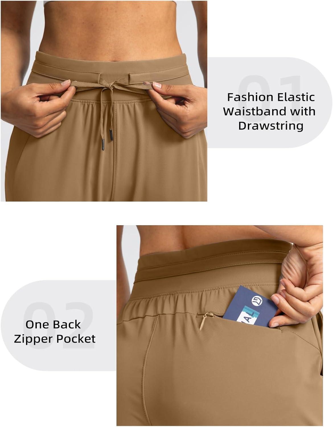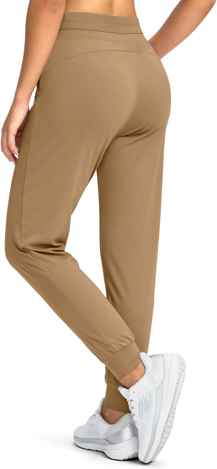 G Gradual Women's Joggers Pants with Zipper Pockets High Waisted Athletic Tapered Sweatpants for Women Workout Lounge(Dark Khaki)