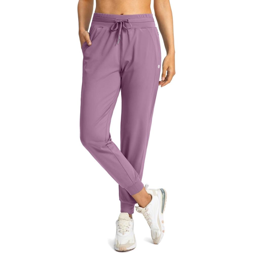 G Gradual Women's Joggers Pants with Zipper Pockets High Waisted Athletic Tapered Sweatpants for Women Workout Lounge(Mauve Pink)