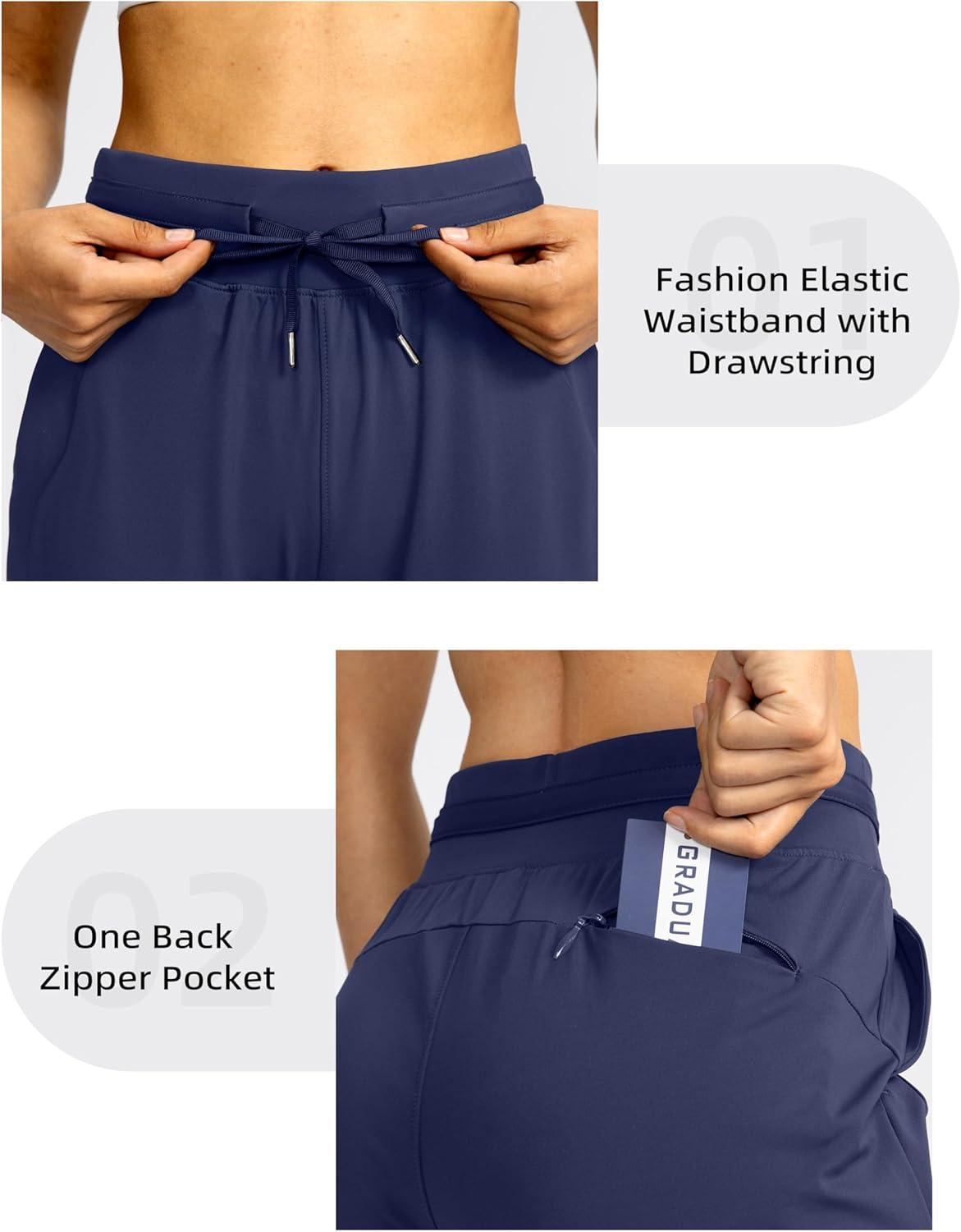 G Gradual Women’s Joggers Pants with Zipper Pockets High Waisted Athletic Tapered Sweatpants for Women Workout Lounge(Navy)