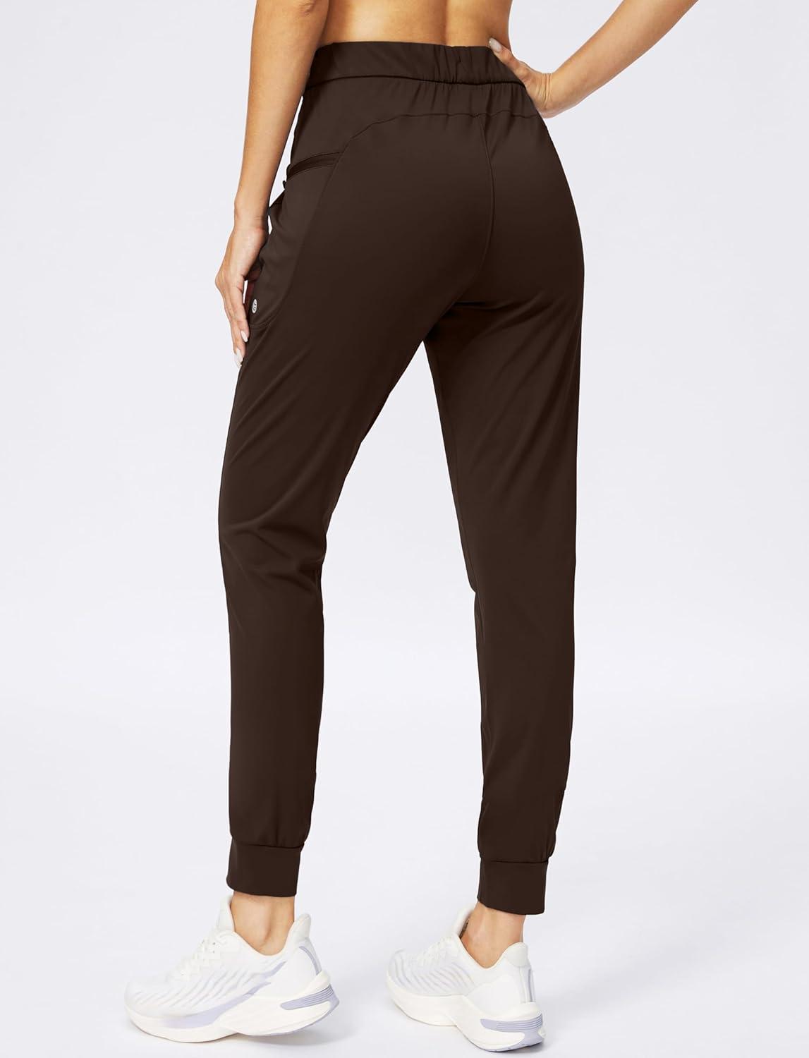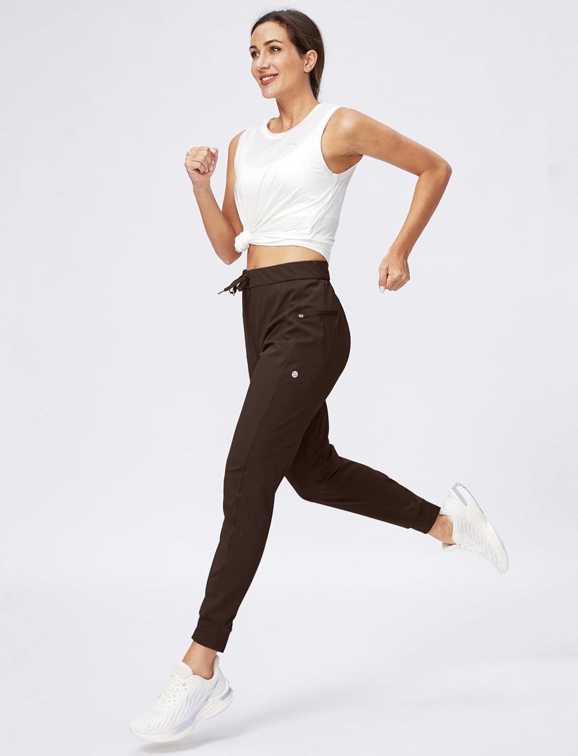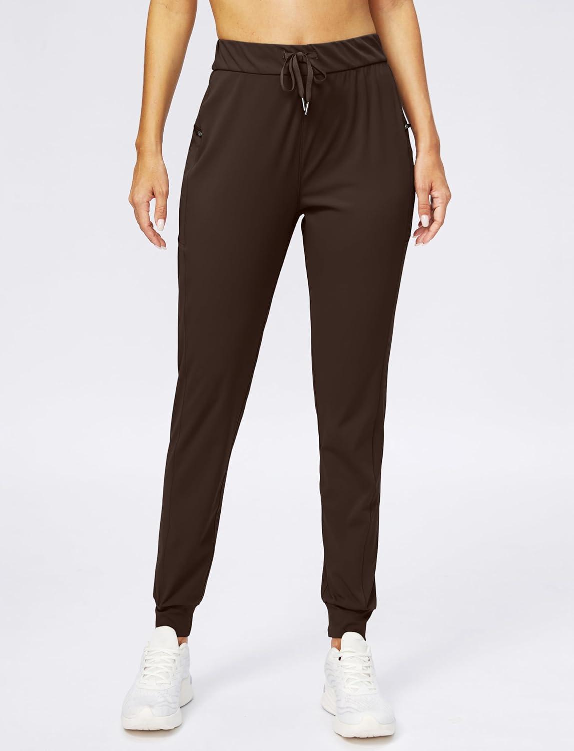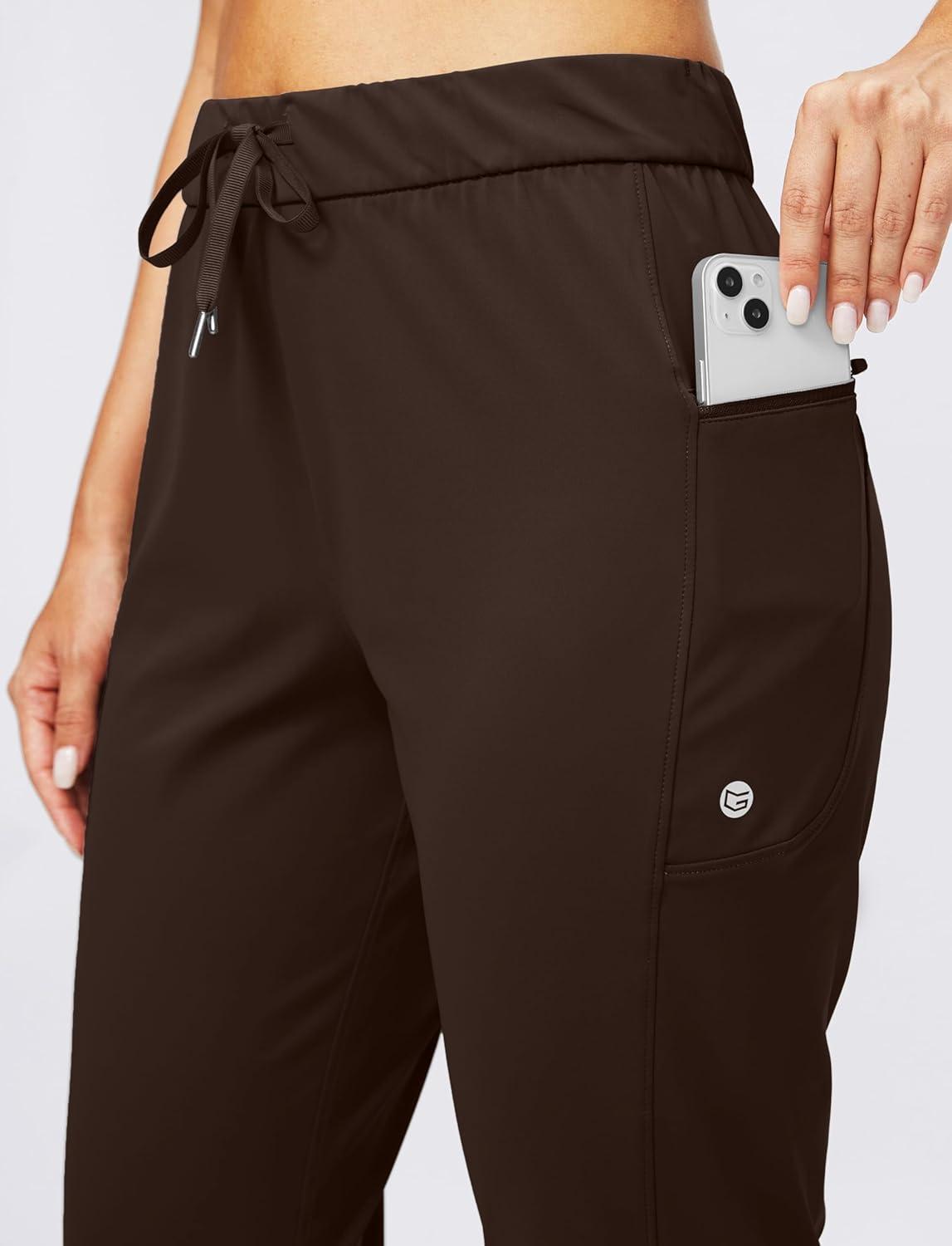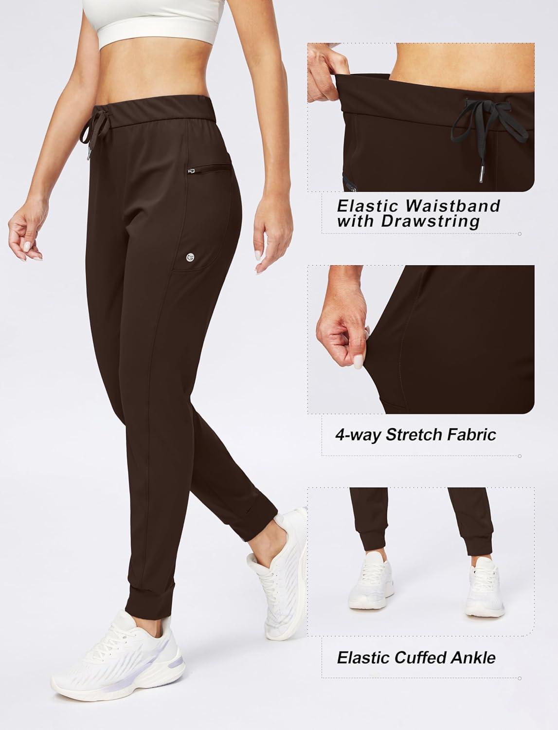 G Gradual Women’s Joggers Pants with Zipper Pockets Stretch Tapered Athletic Joggers for Women Lounge, Jogging, Workout(Brown)