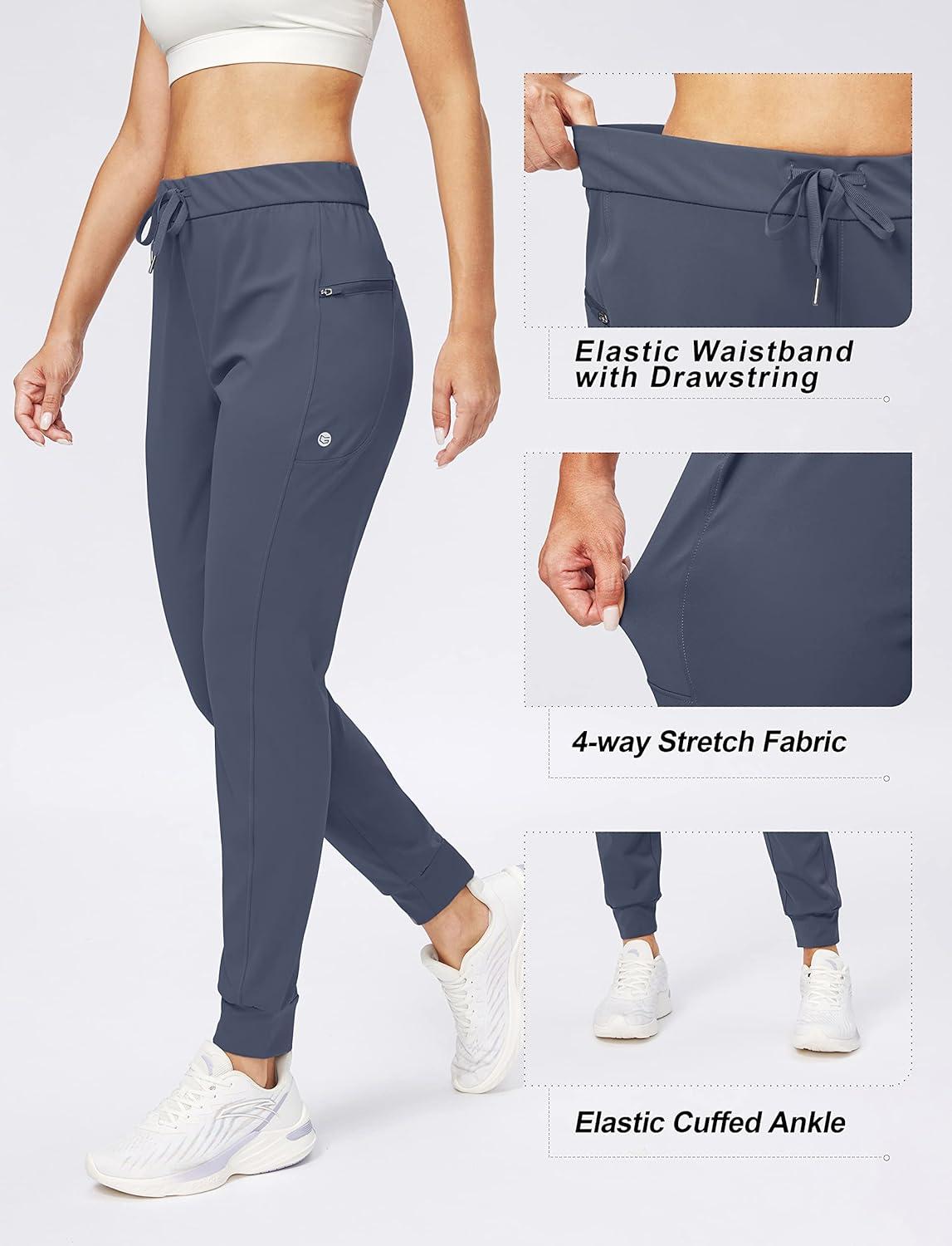 G Gradual Women's Joggers Pants with Zipper Pockets Stretch Tapered Athletic Joggers for Women Lounge, Jogging, Workout(Dusty Blue)