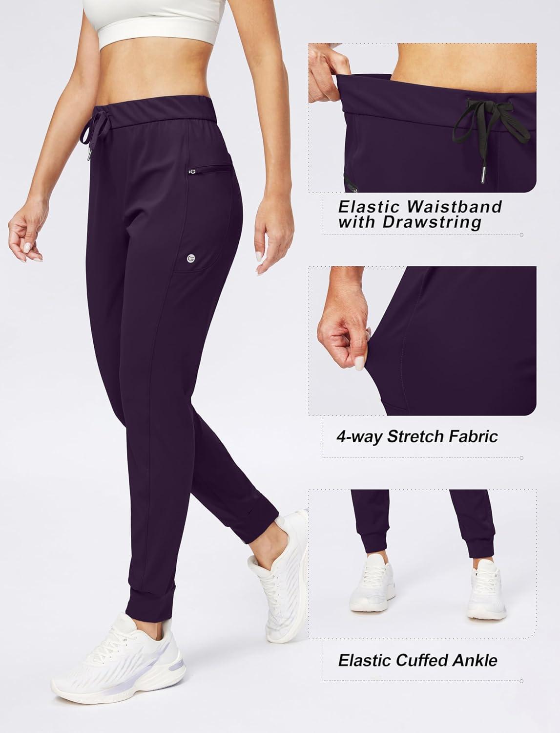G Gradual Women's Joggers Pants with Zipper Pockets Stretch Tapered Athletic Joggers for Women Lounge, Jogging, Workout(Vintage Purple)