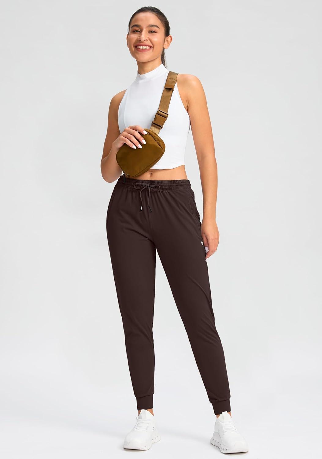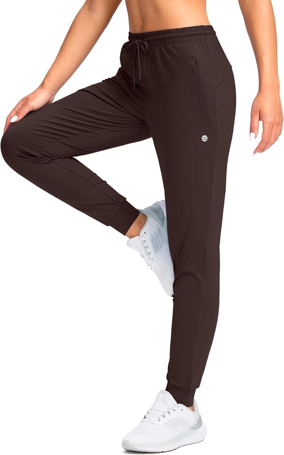 G Gradual Women’s Joggers Pants with Zipper Pockets Tapered Running Sweatpants for Women Lounge, Jogging(Brown)