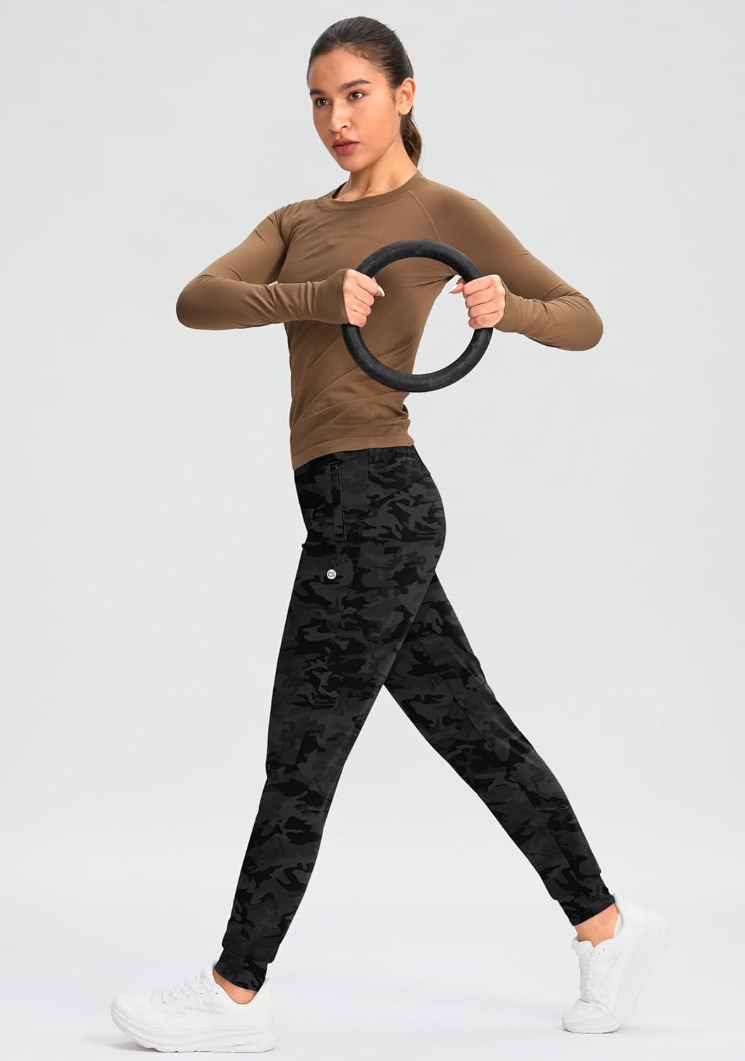 G Gradual Women’s Joggers Pants with Zipper Pockets Tapered Running Sweatpants for Women Lounge, Jogging(Grey Camo)