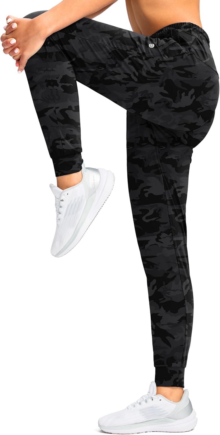 G Gradual Women's Joggers Pants with Zipper Pockets Tapered Running Sweatpants for Women Lounge, Jogging(Grey Camo)