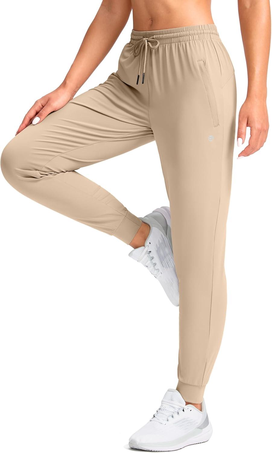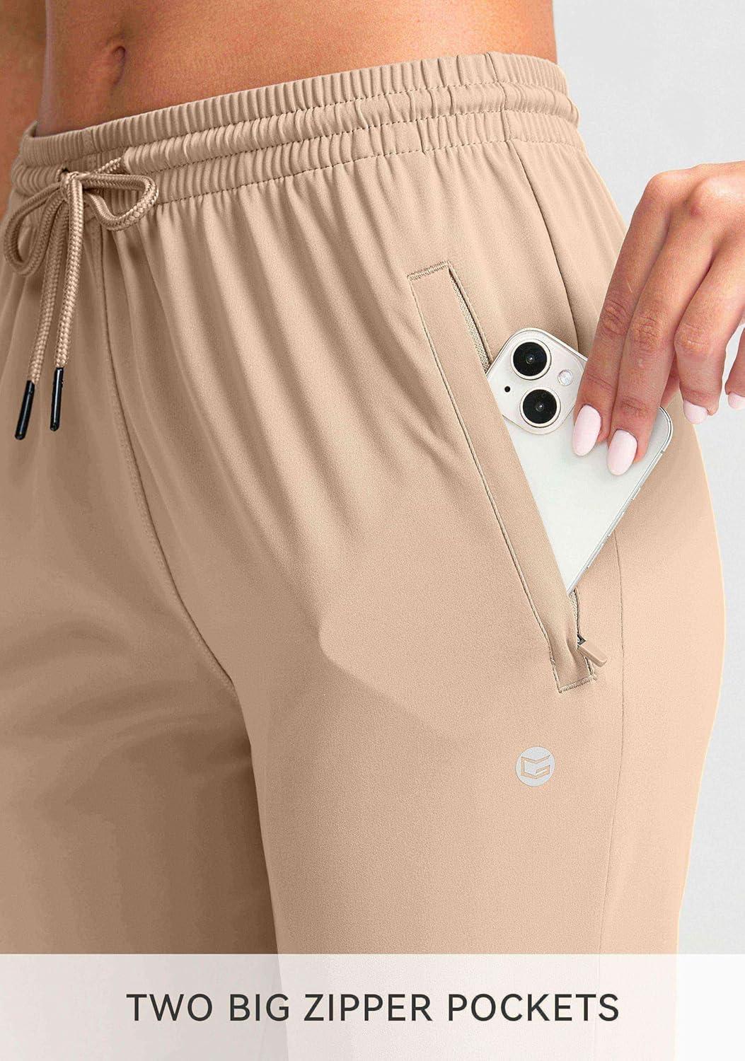 G Gradual Women’s Joggers Pants with Zipper Pockets Tapered Running Sweatpants for Women Lounge, Jogging(Khaki)