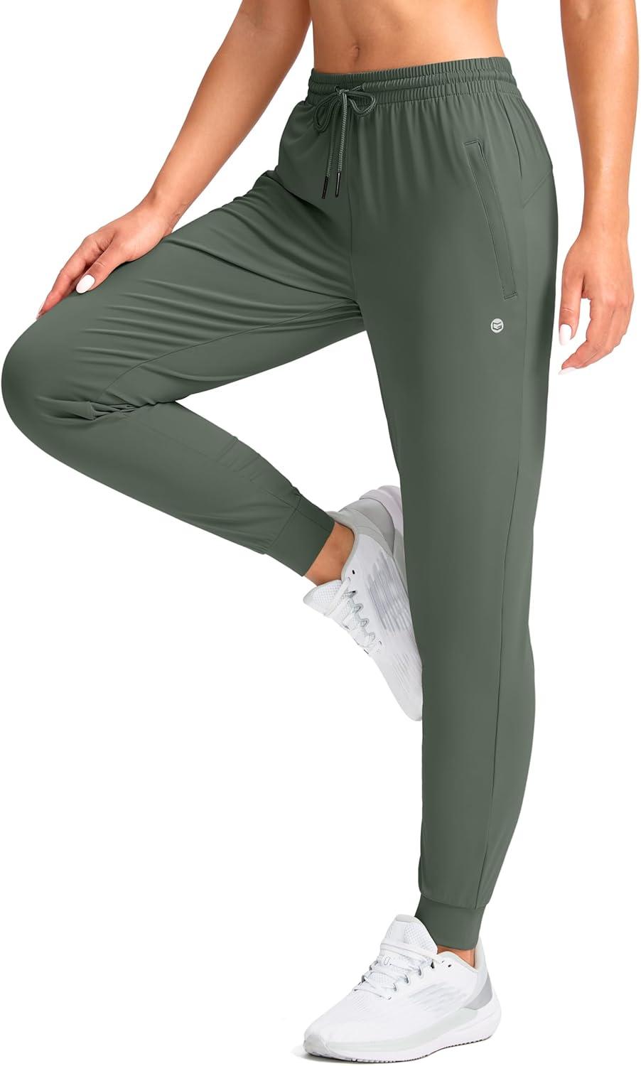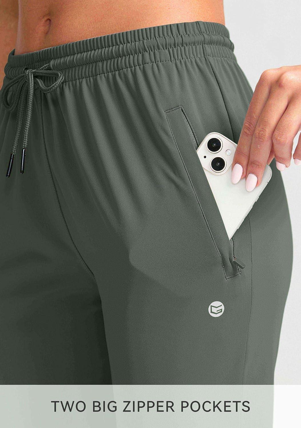 G Gradual Women’s Joggers Pants with Zipper Pockets Tapered Running Sweatpants for Women Lounge, Jogging(Sage Green)