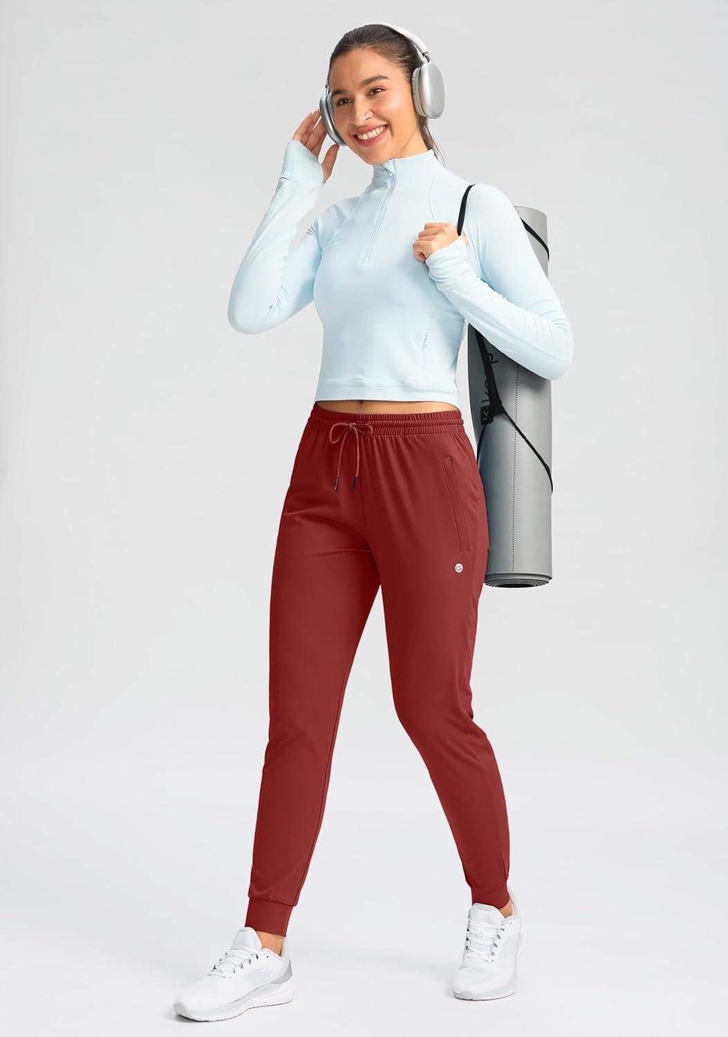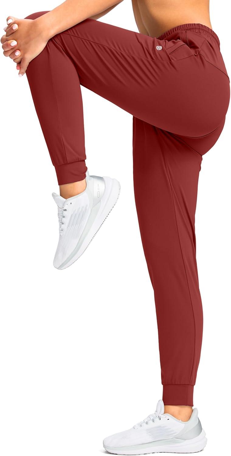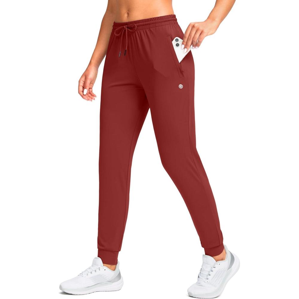 G Gradual Women’s Joggers Pants with Zipper Pockets Tapered Running Sweatpants for Women Lounge, Jogging(Savannah Red)