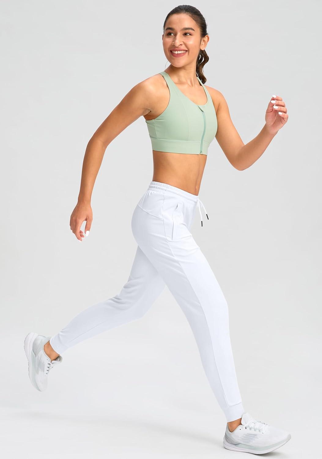 G Gradual Women's Joggers Pants with Zipper Pockets Tapered Running Sweatpants for Women Lounge, Jogging(White)
