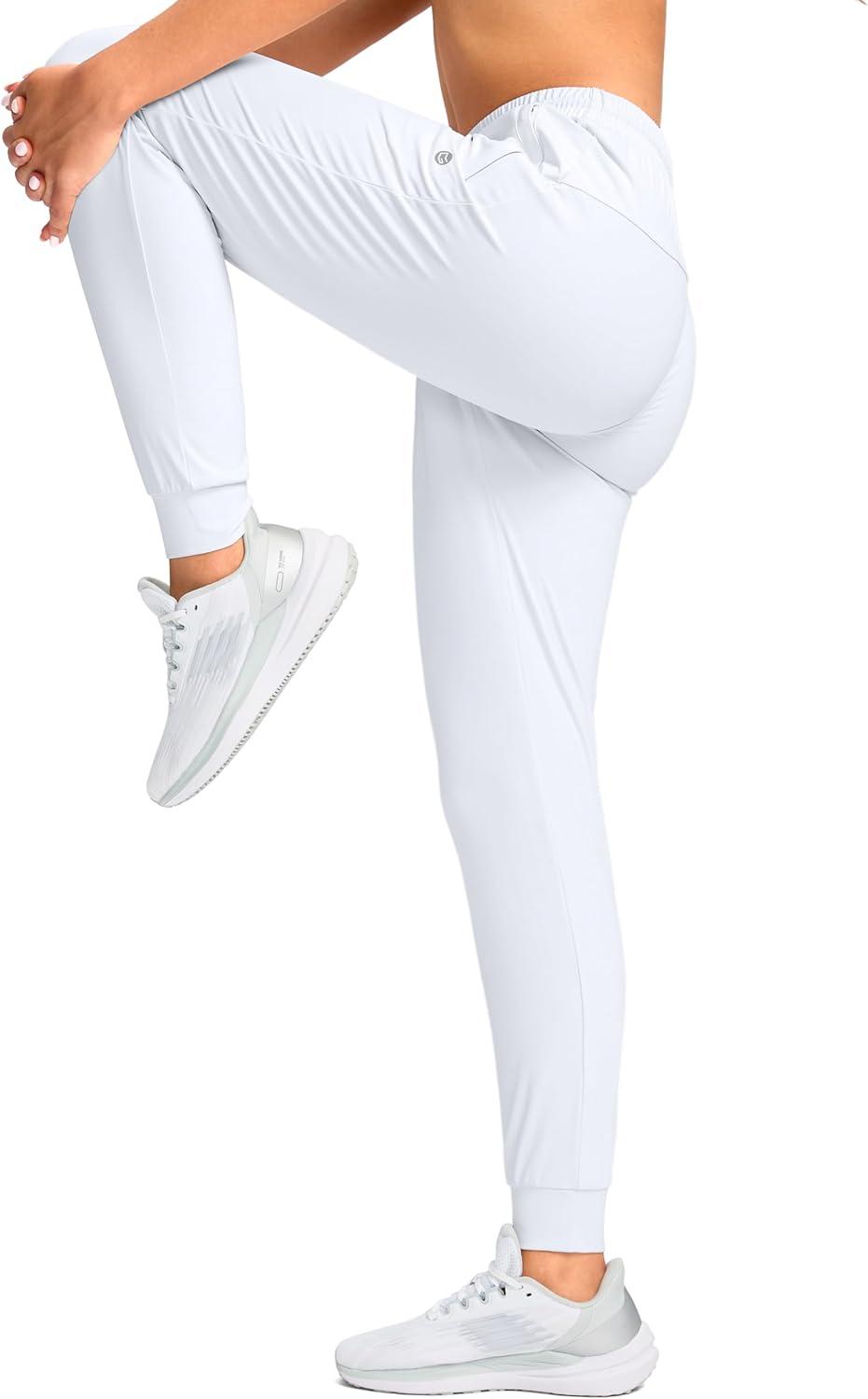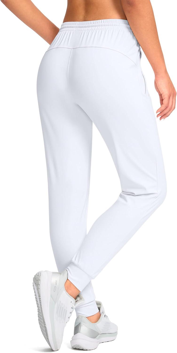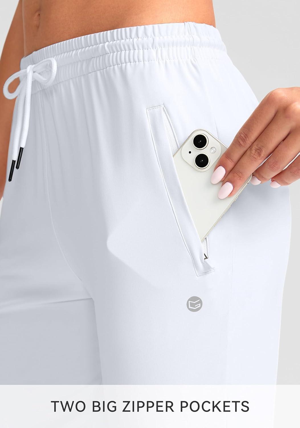 G Gradual Women’s Joggers Pants with Zipper Pockets Tapered Running Sweatpants for Women Lounge, Jogging(White)