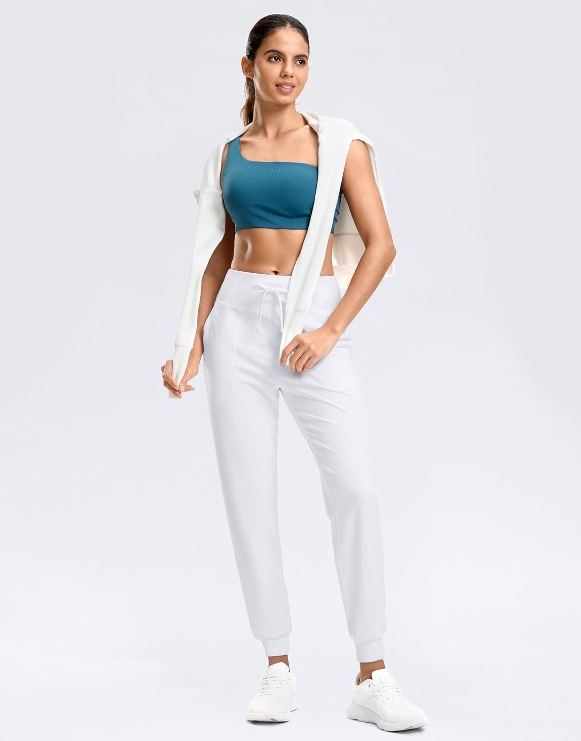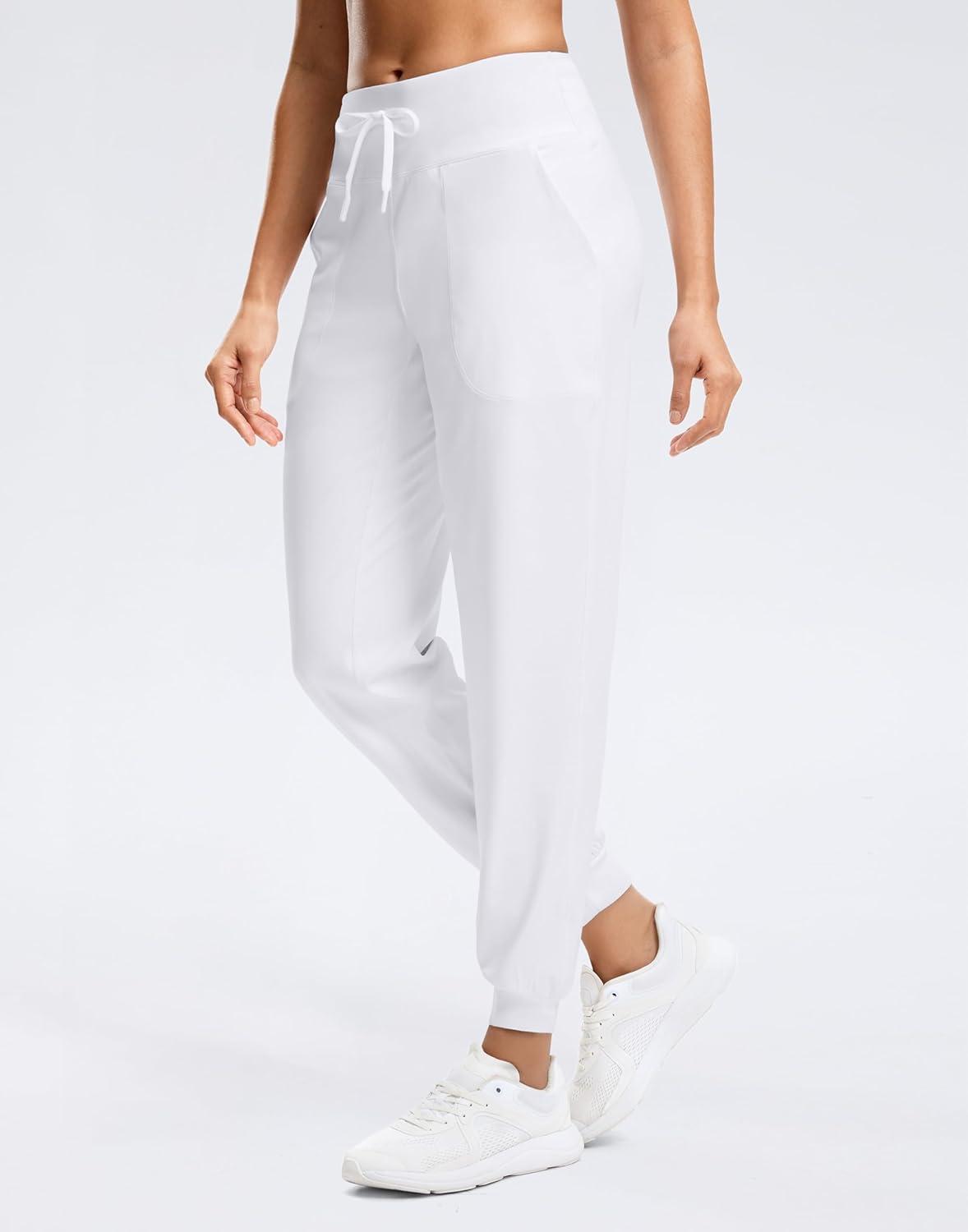G Gradual Women’s Joggers Zip Pockets Drawstring Gym Sweatpants High Waisted Tapered Pants for Workout, Travel, Lounge(White)